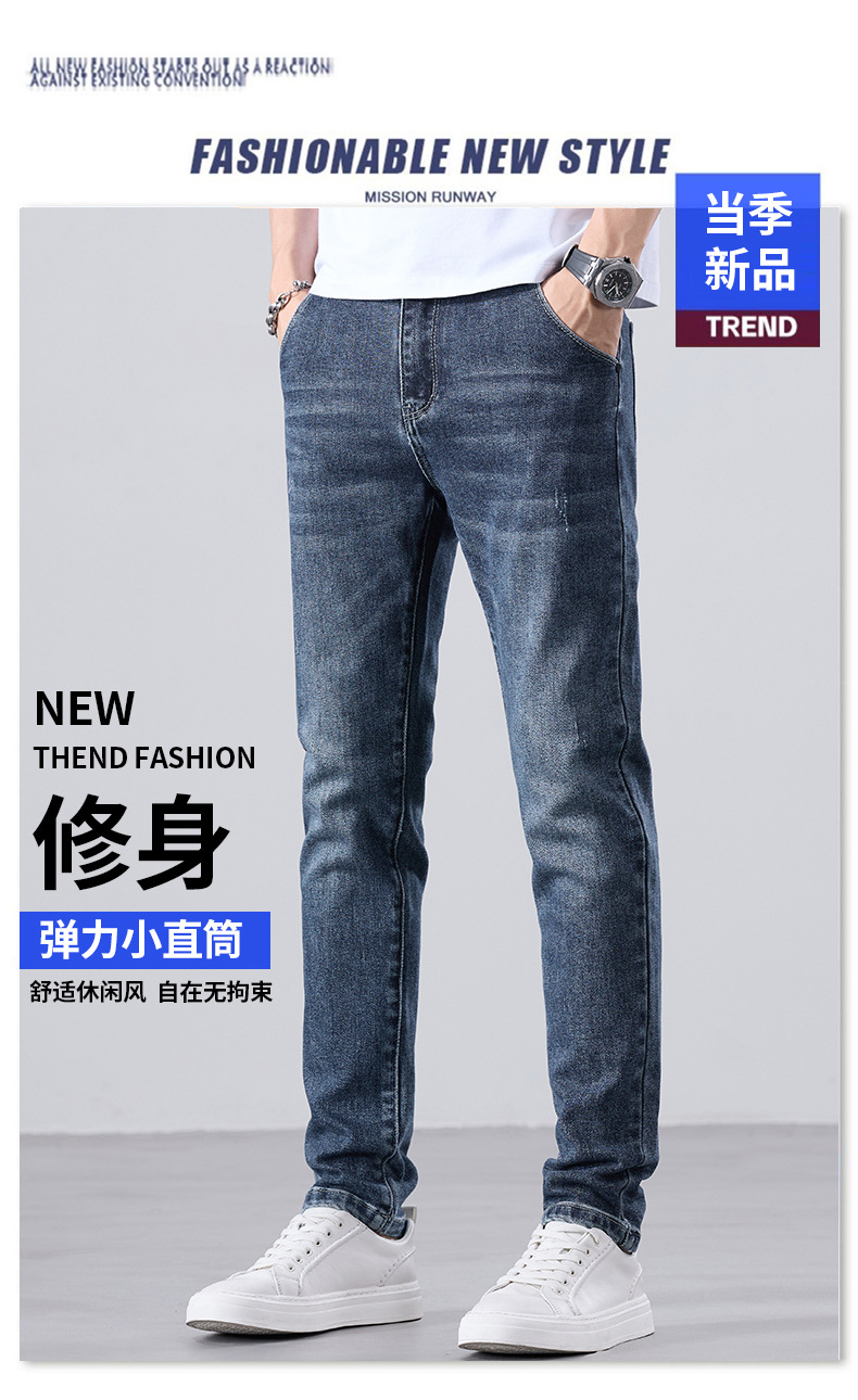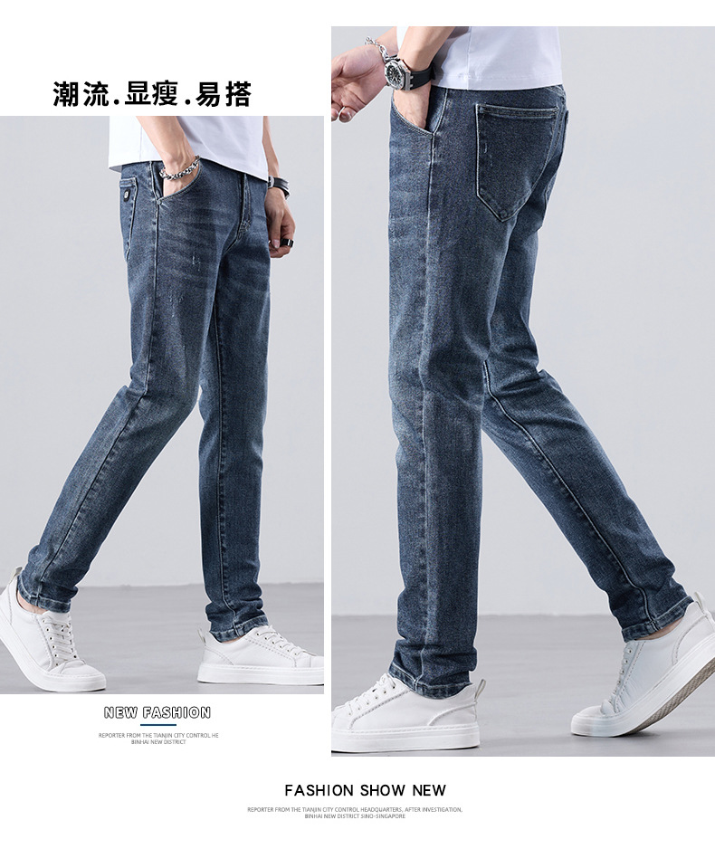 봄과 여름 2025 새로운 청소년 한국 스타일 스트레치 슬림 핏 작은 다리 남성 청바지 트렌디 818스토어 가기