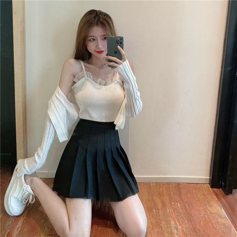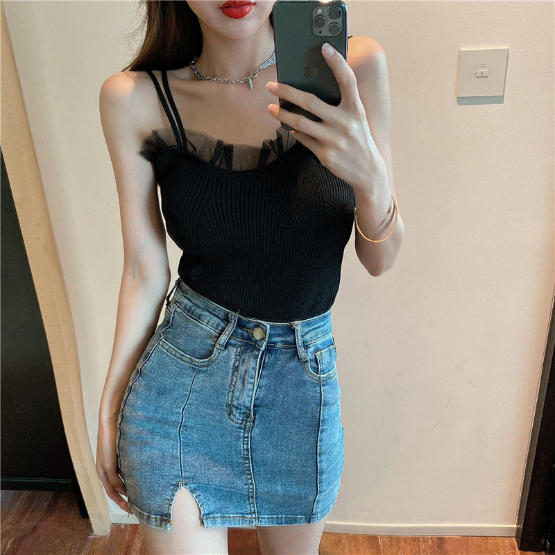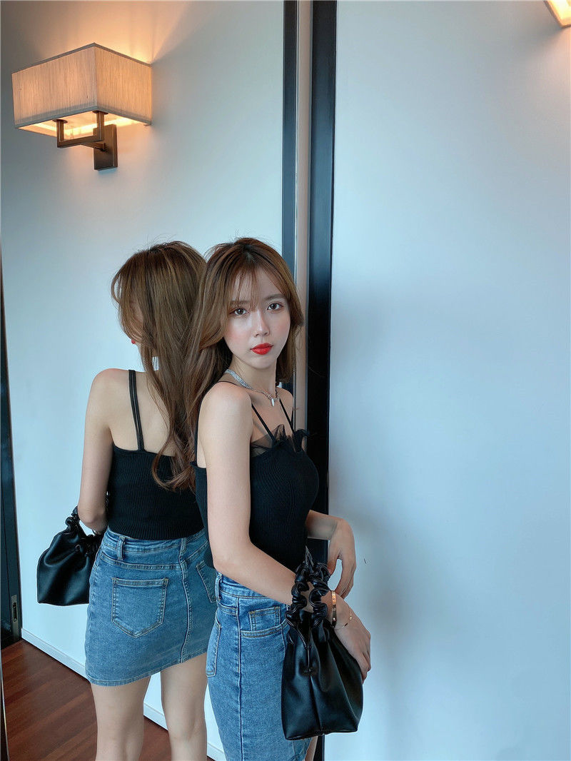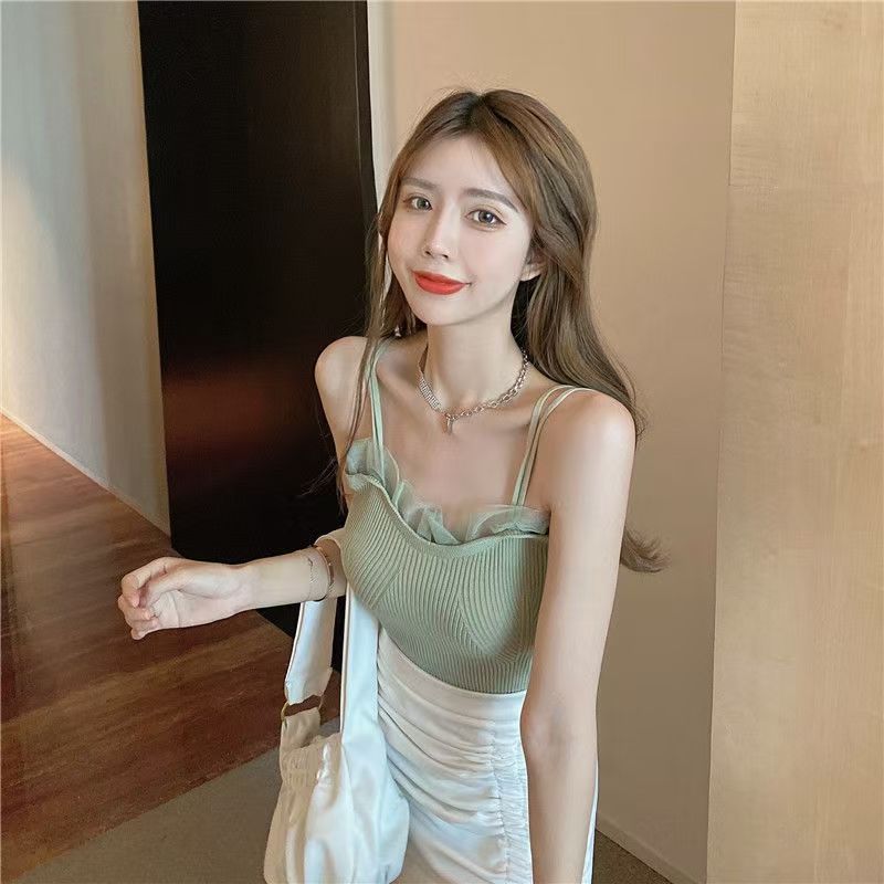 2025 새로운 여름 레이스 V 넥 작은 슬링 디자인 틈새 니트 베이스 조끼 여성 외부 착용 유행 내복스토어 가기