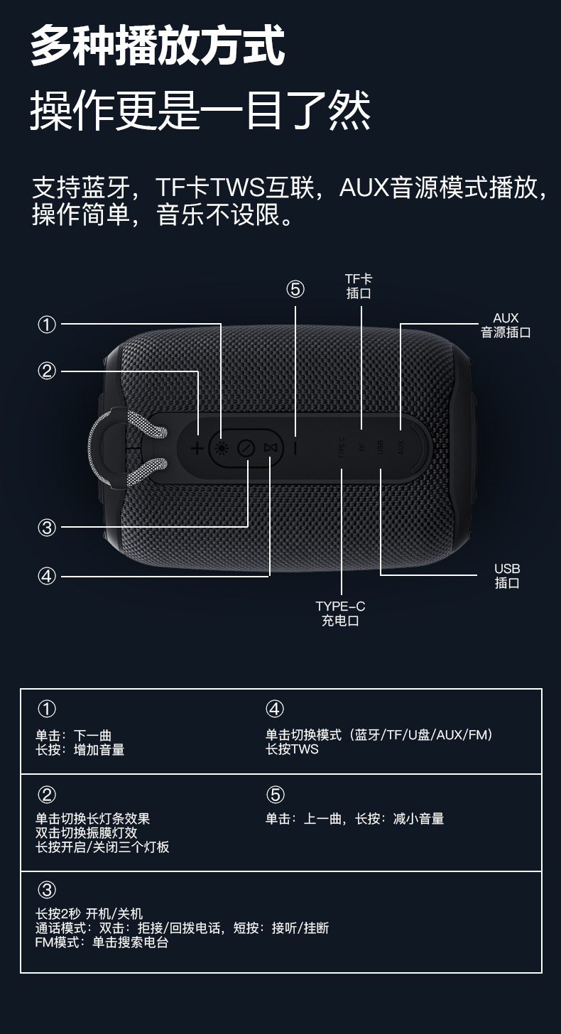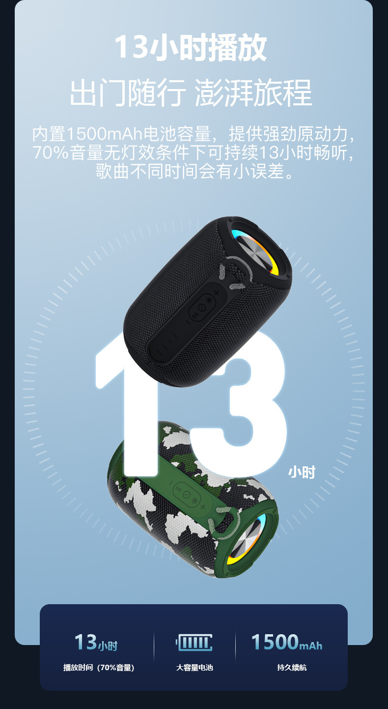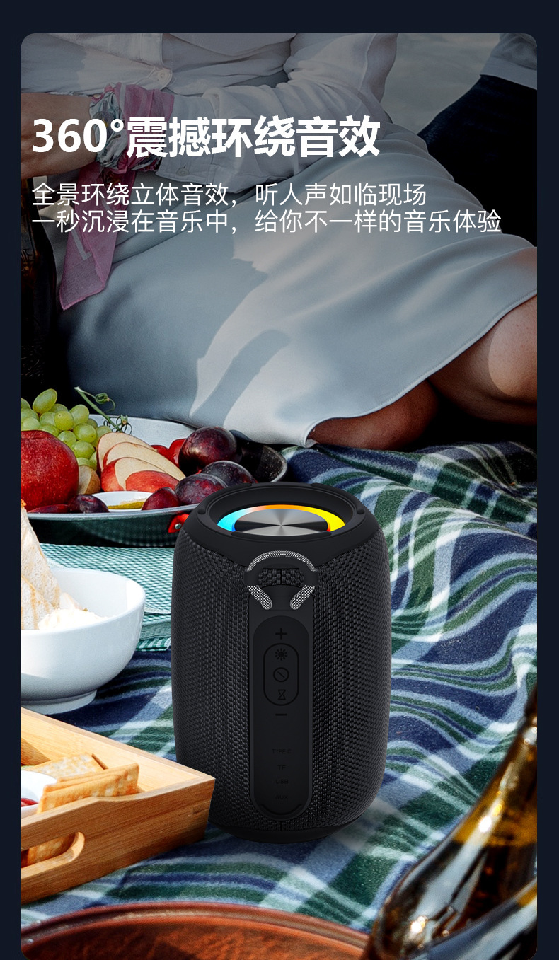 국경 새로운 미니 무거운 서브 우퍼 야외 긴 배터리 수명 다채로운 분위기 빛 방수 블루투스 스피커