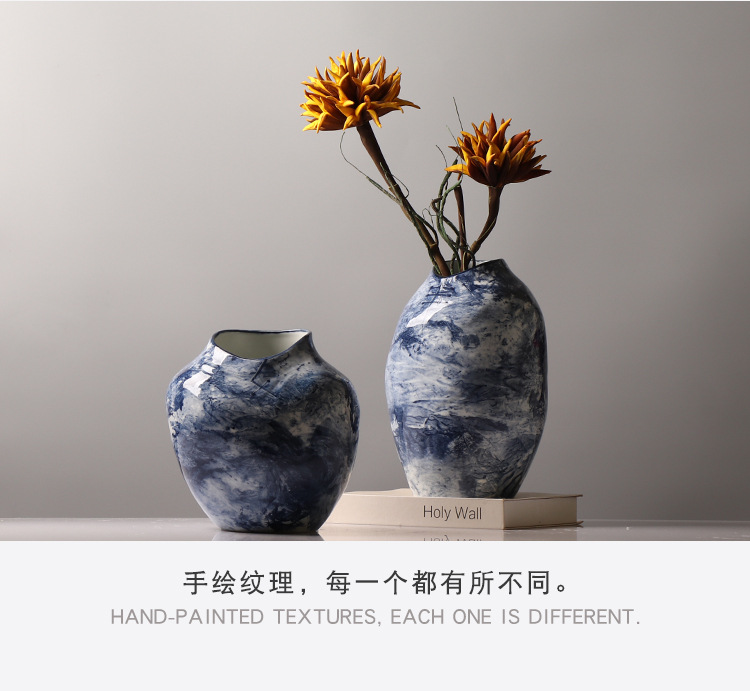 현대 창조적 인 세라믹 꽃병 디자이너 손으로 그린 꽃꽂이 꽃꽂이 꽃꽂이 홈 스테이 모델 룸 장식 특수 모양의 장식품이 좋아 보입니다.스토어 가기