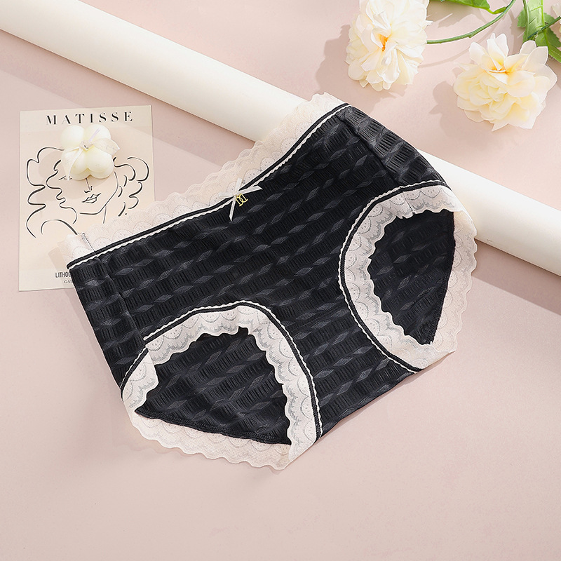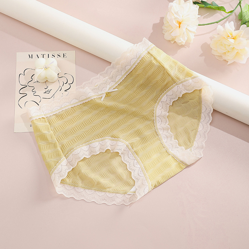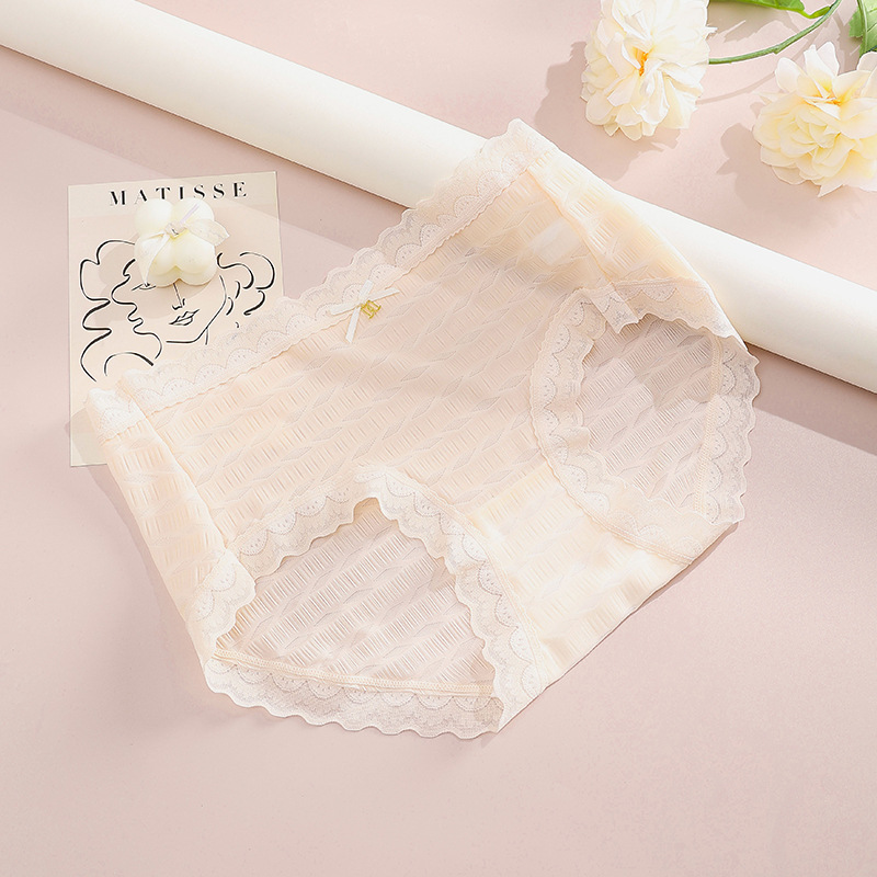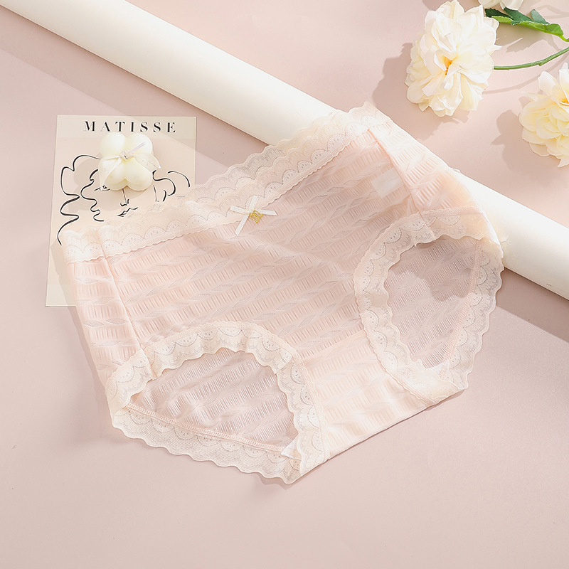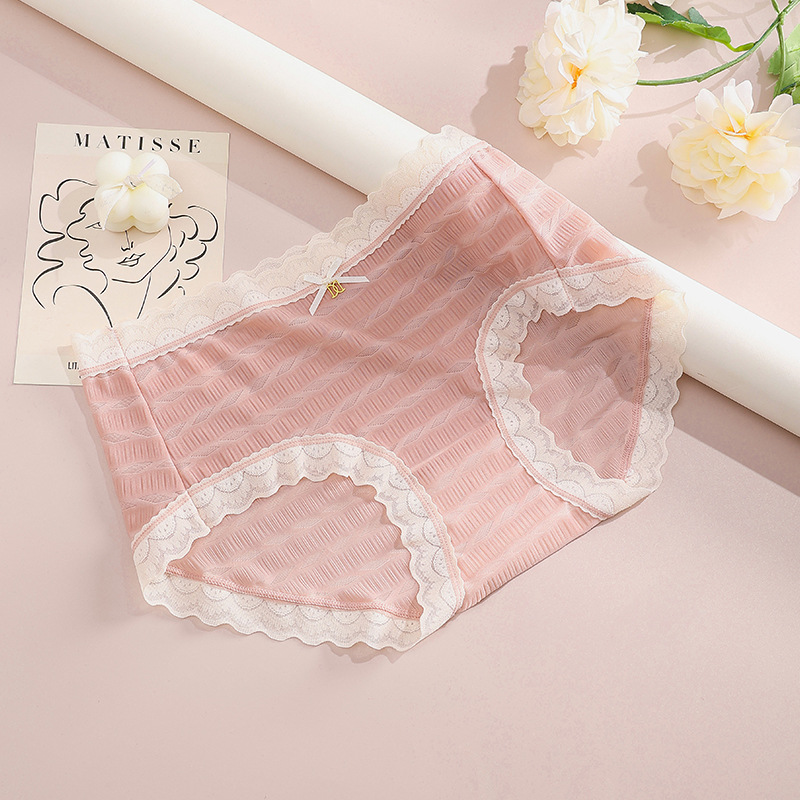 일본식 레이스 섹시 아이스 실크 속옷 여성용 tracless 얇은 항균 퓨어 코튼 크로트 하이 탄성 미드 웨이스트 여성용 브리프