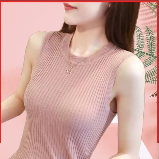 여자 라운드 넥 조끼 아이스 실크 니트 슬링 여름 한국식 올매치 민소매 티셔츠 이너 풀오버 베이스 셔츠