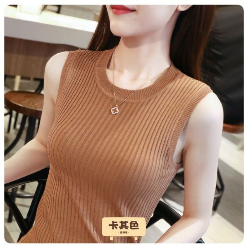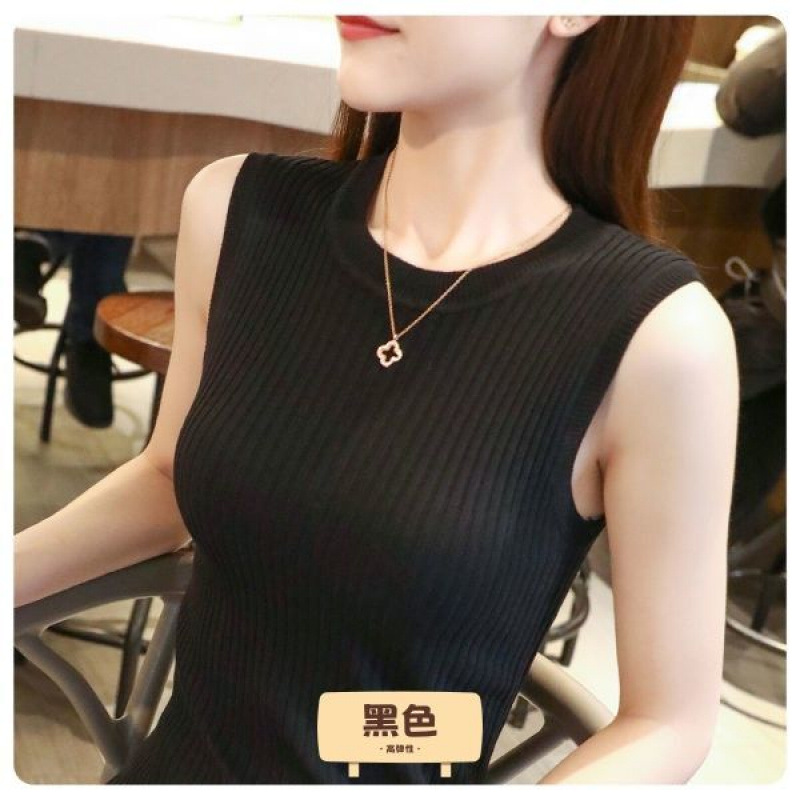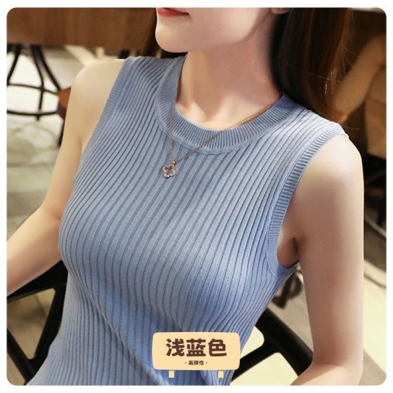 여자 라운드 넥 조끼 아이스 실크 니트 슬링 여름 한국식 올매치 민소매 티셔츠 이너 풀오버 베이스 셔츠스토어 가기