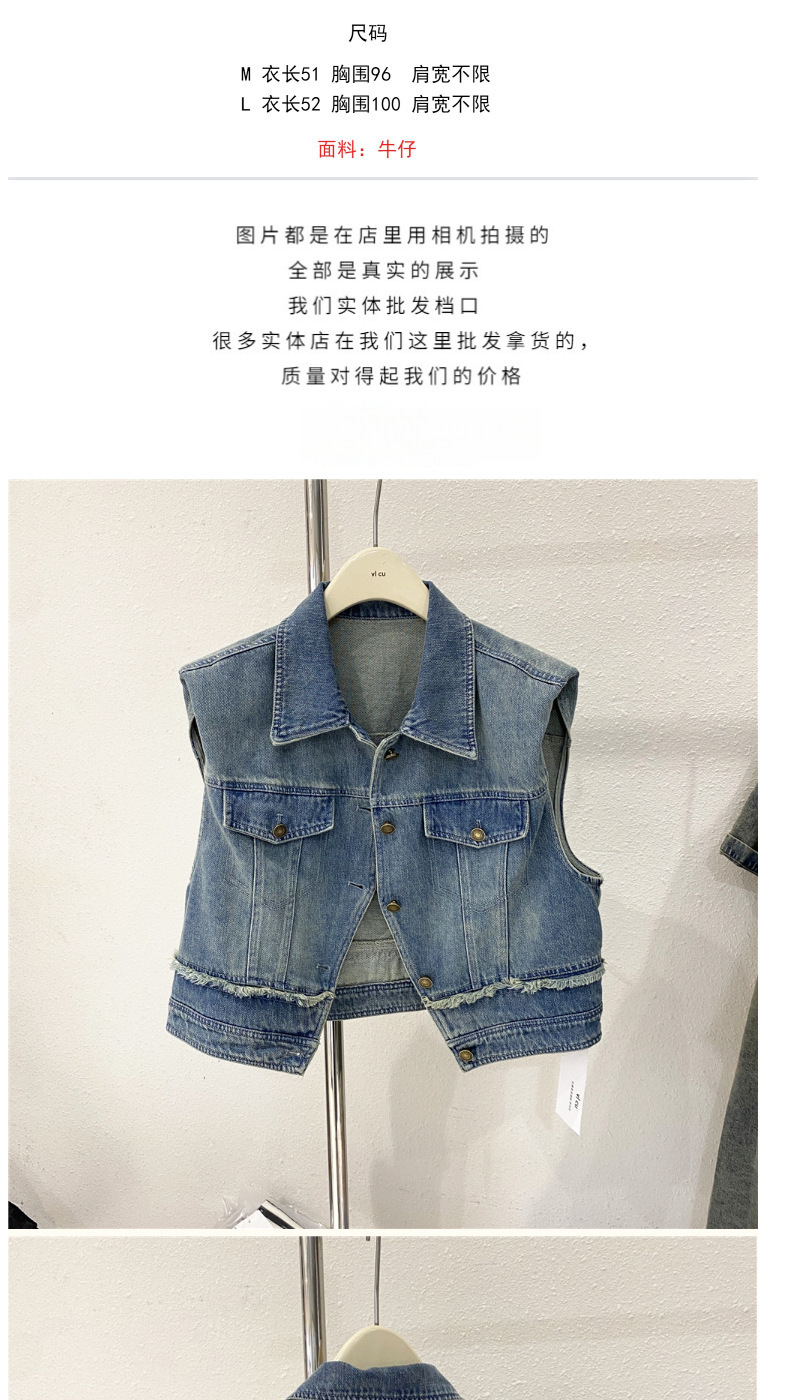 유럽 역 2025 여름 느슨한 슬리밍 빈티지 랩 데님 조끼 여성 짧은 모피 가장자리 패드 어깨 조끼스토어 가기