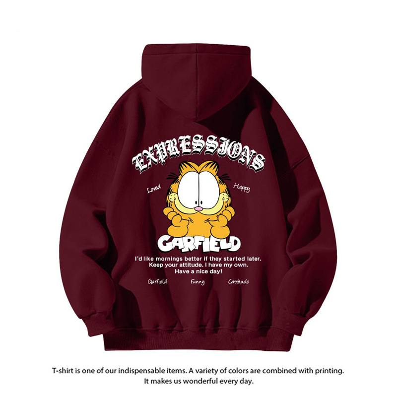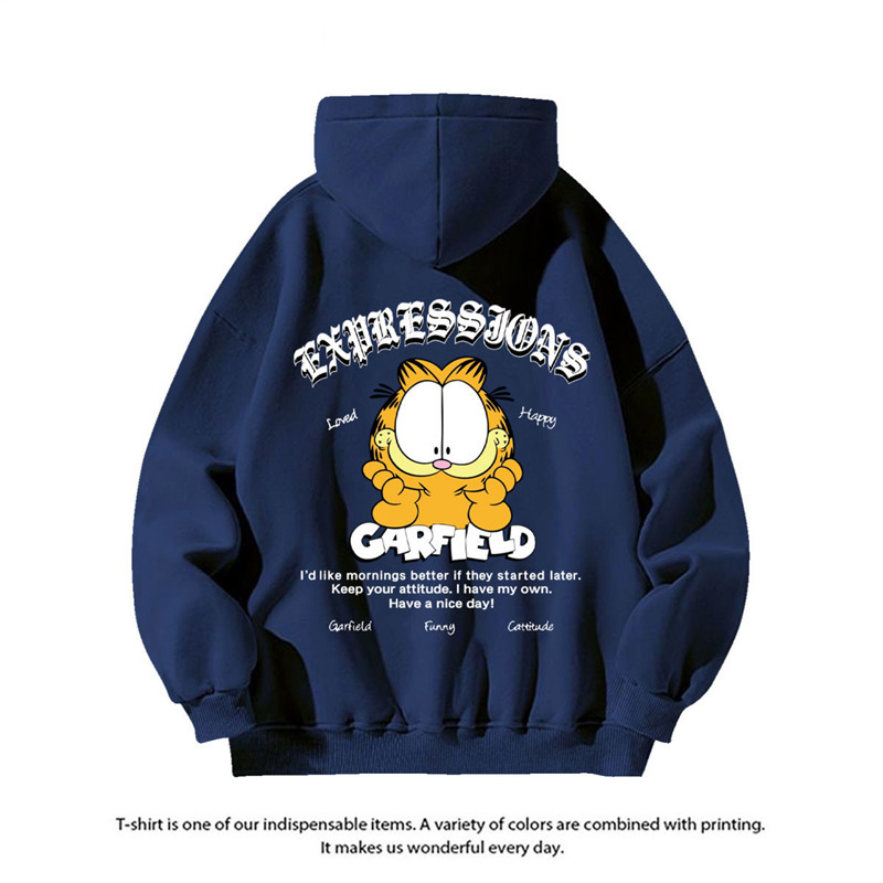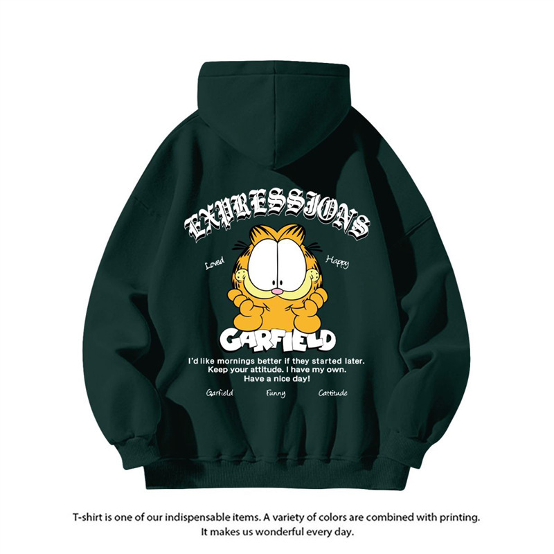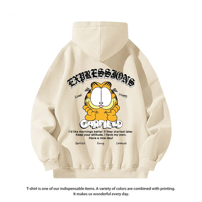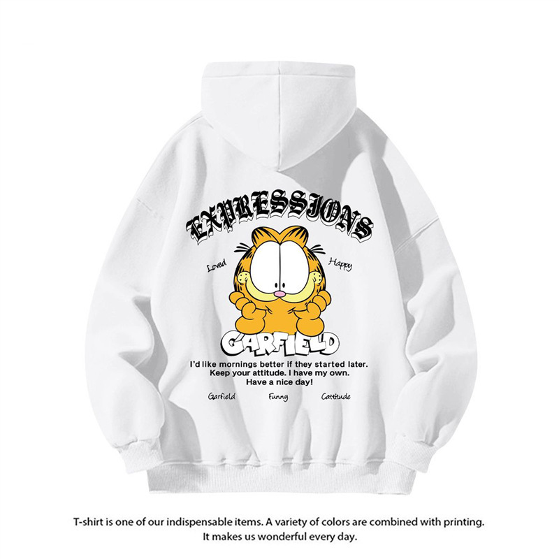 미국 패션 만화 가필드, 남성용 캐주얼 가을과 겨울 Ins 자켓 연인을위한 후드 스웨트 셔츠 인쇄스토어 가기