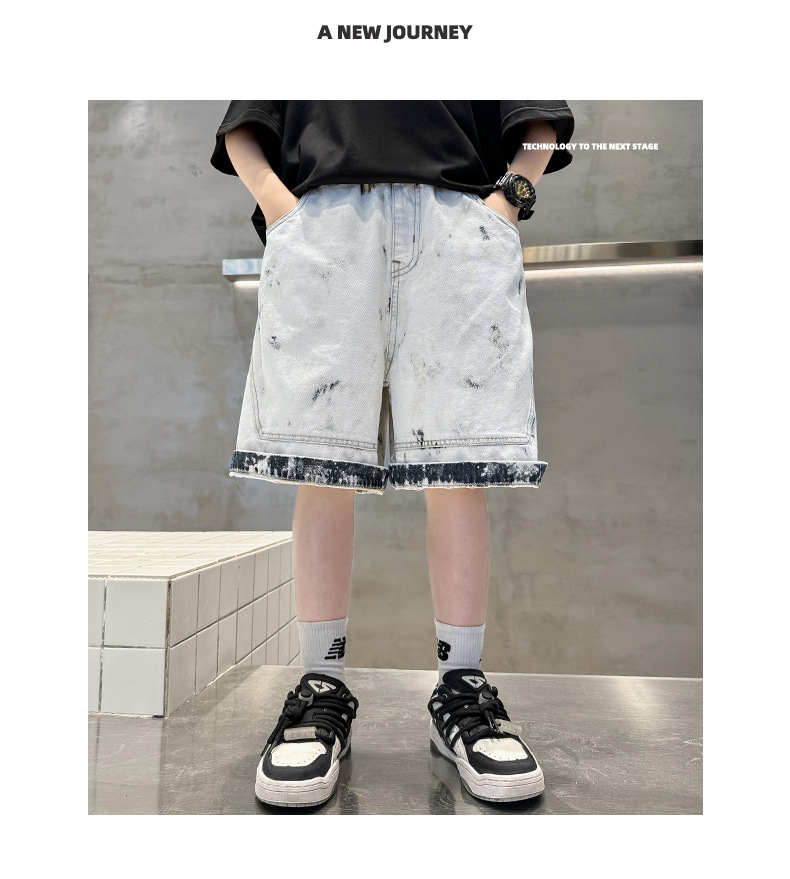 여름 중다 소년 데님 반바지 새로운 아동복 어린이 소년 고민 트렌디 쿨 반바지 컬러 콘트라스트 헤어