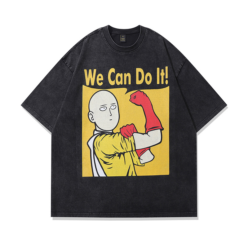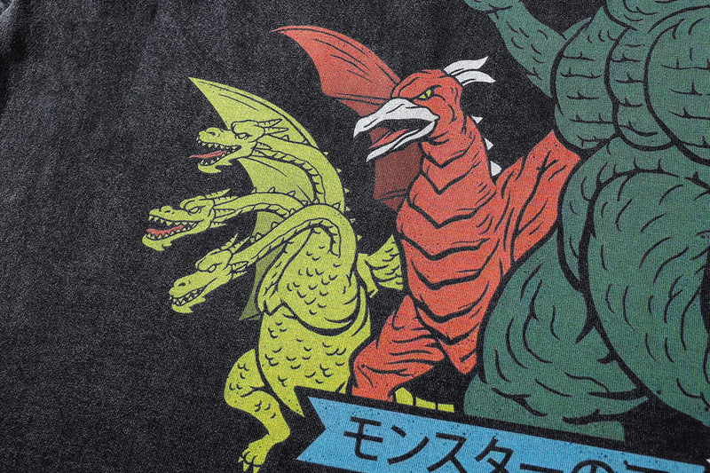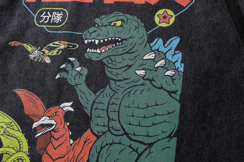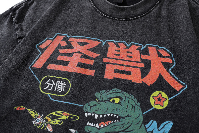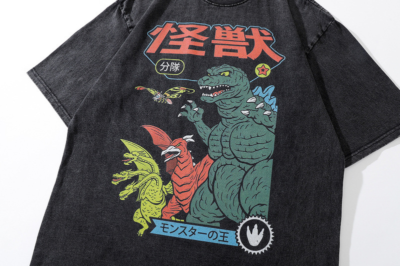 하라주쿠 일본 거리 만화 인쇄 오래 된 반팔 티셔츠 남성용 트렌디 브랜드 힙합 느슨한 세탁 가능한 반팔 티셔츠스토어 가기
