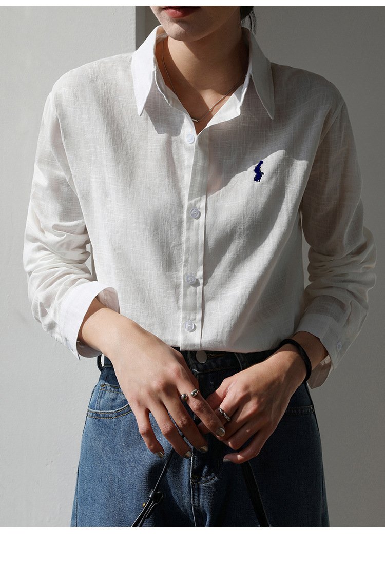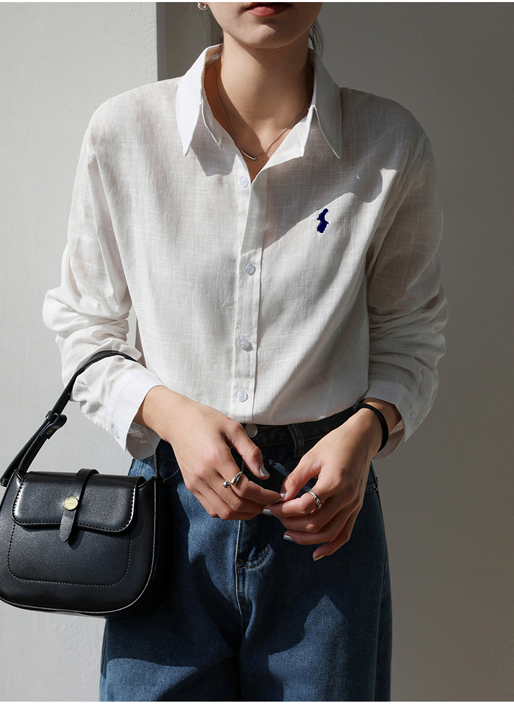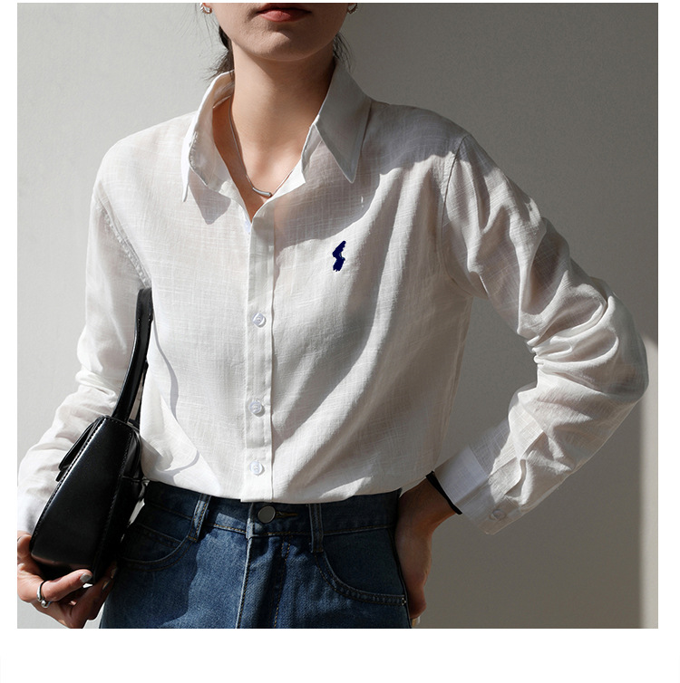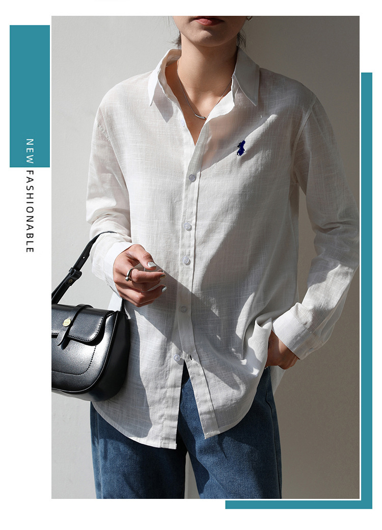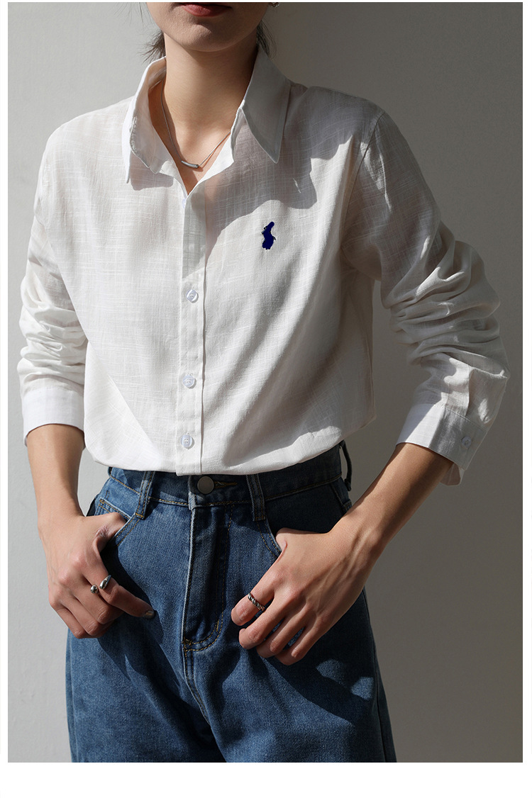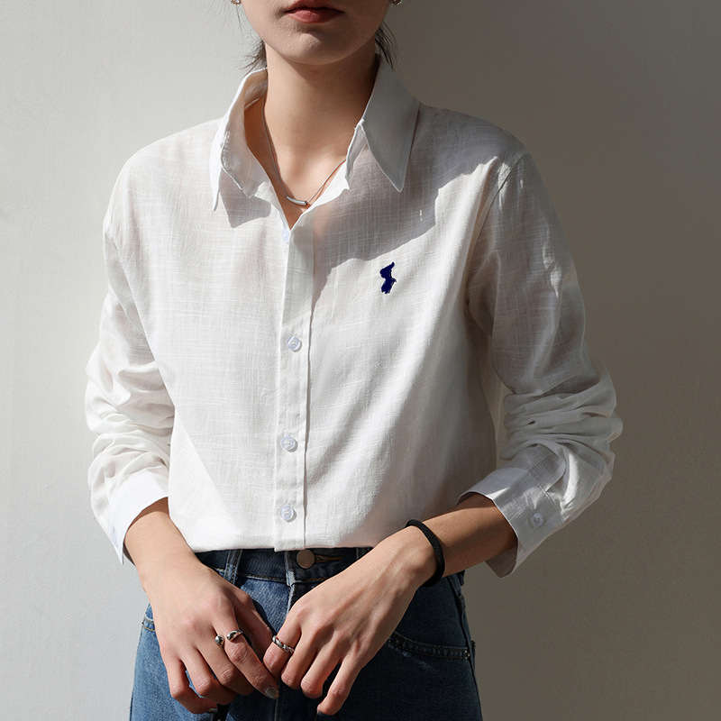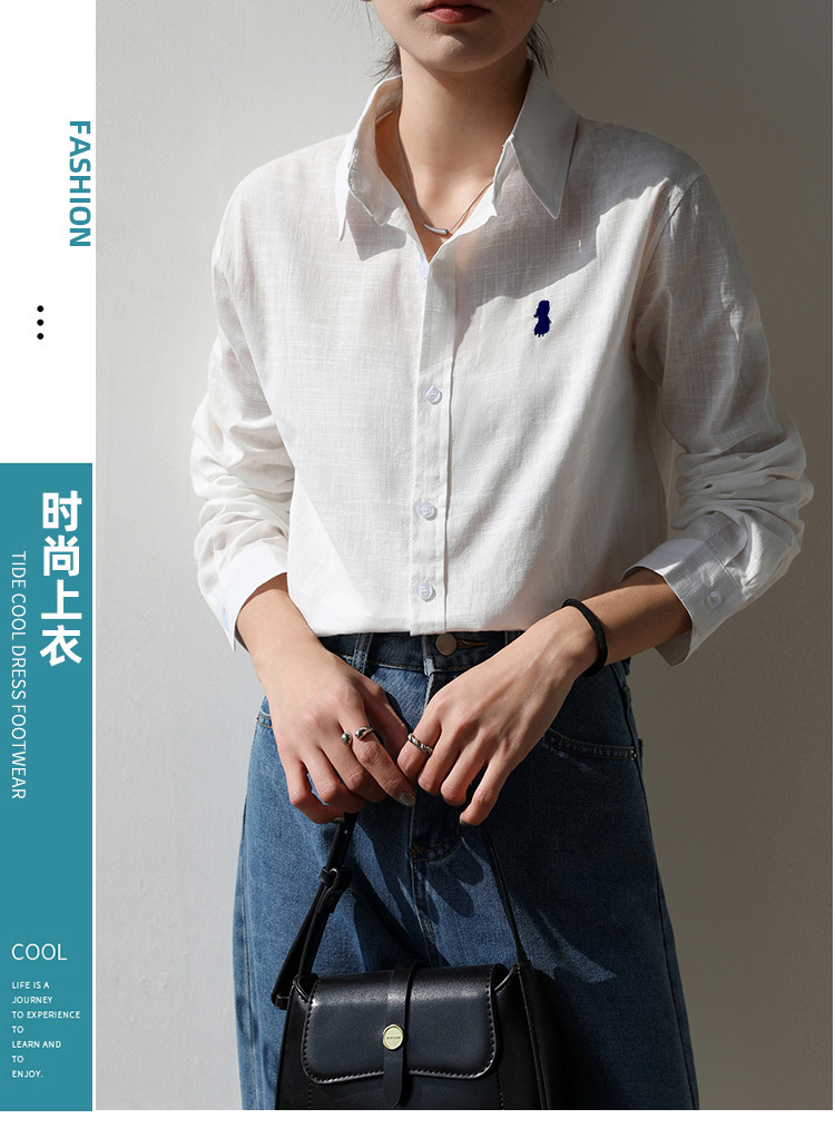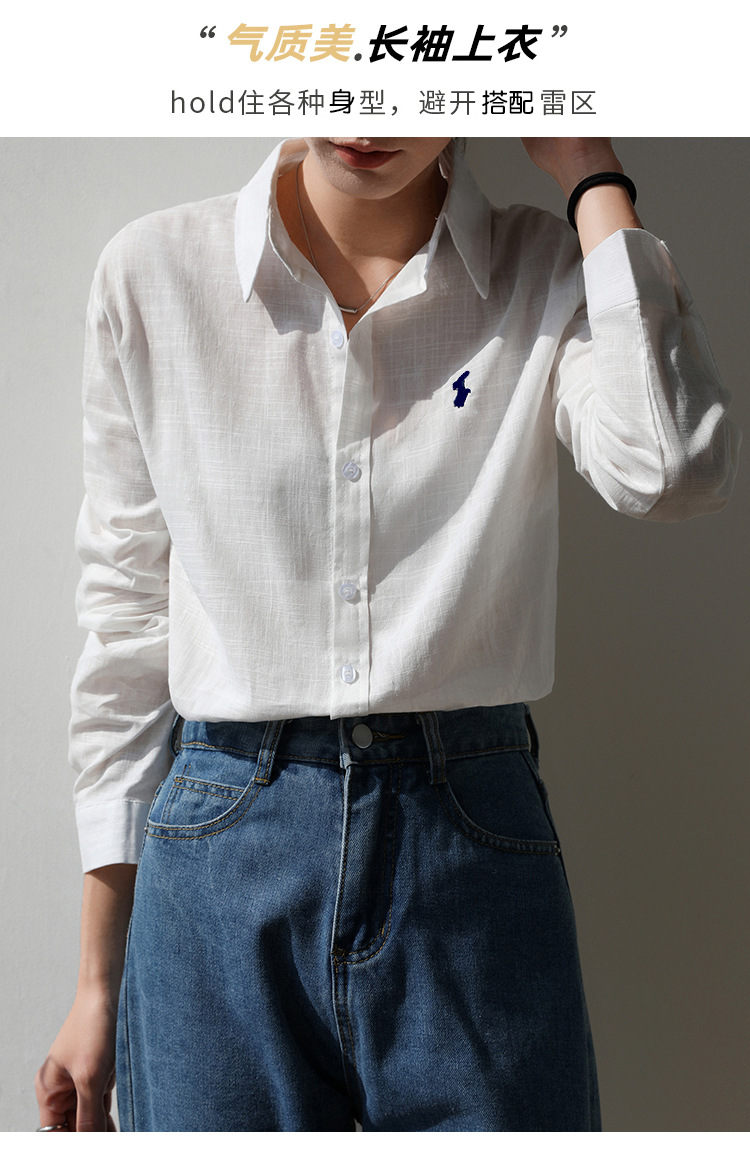 실제 촬영 2025 봄과 여름 자수 말 흰면과 린넨 셔츠 여성용 캐주얼 느슨한 긴 소매 린넨 셔츠스토어 가기