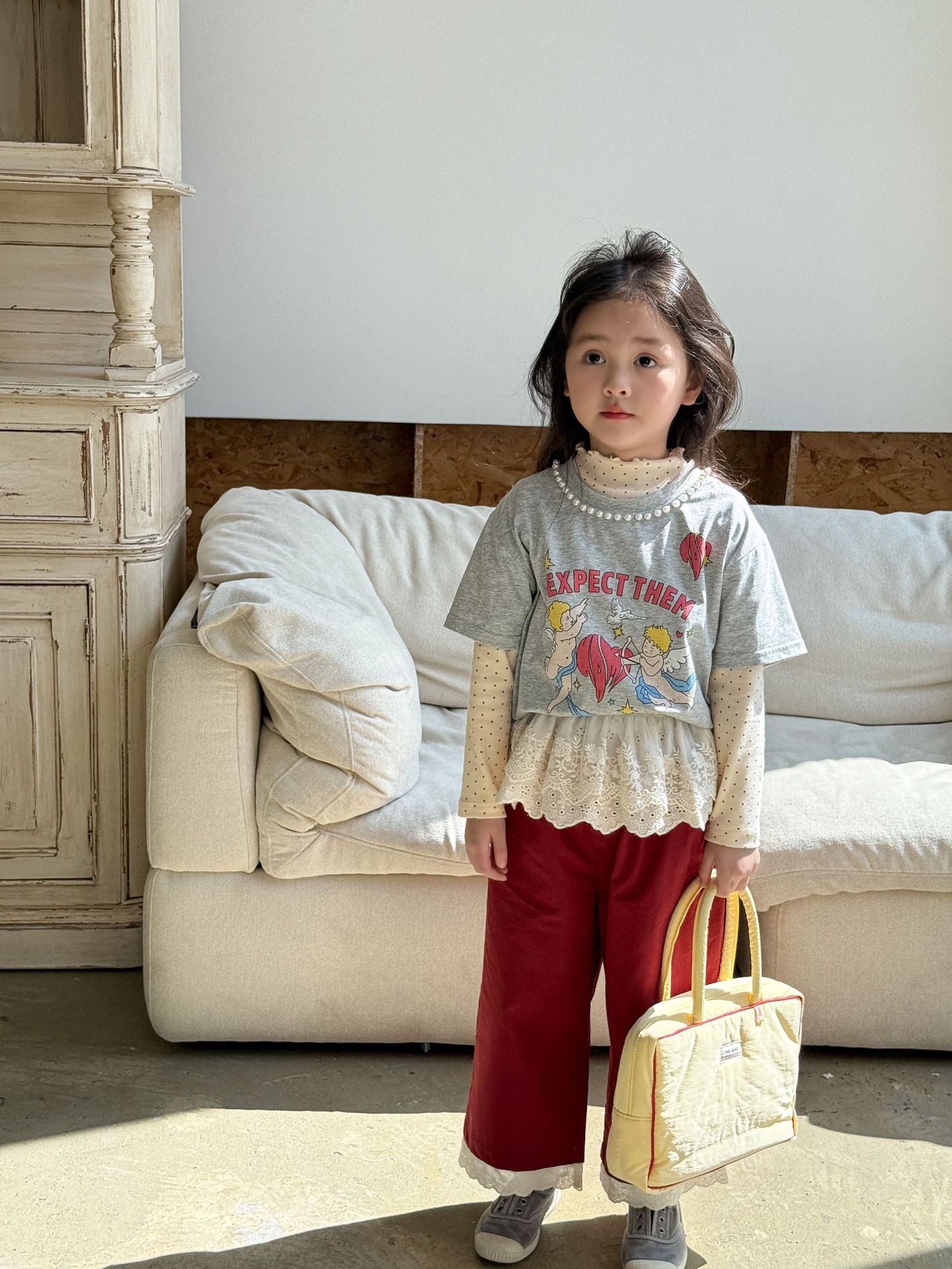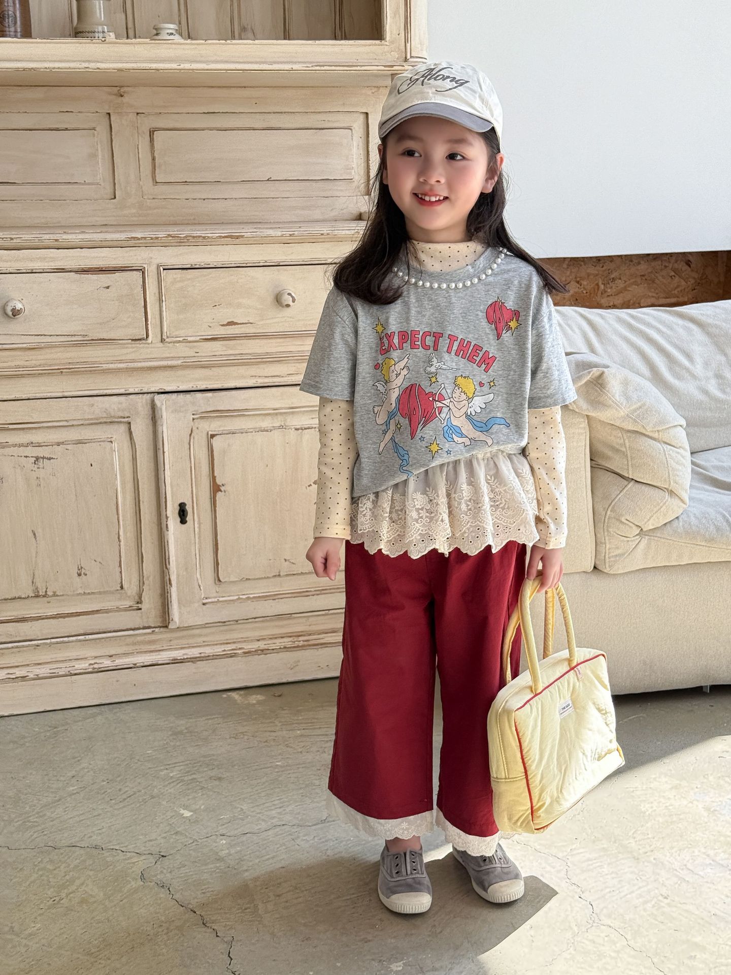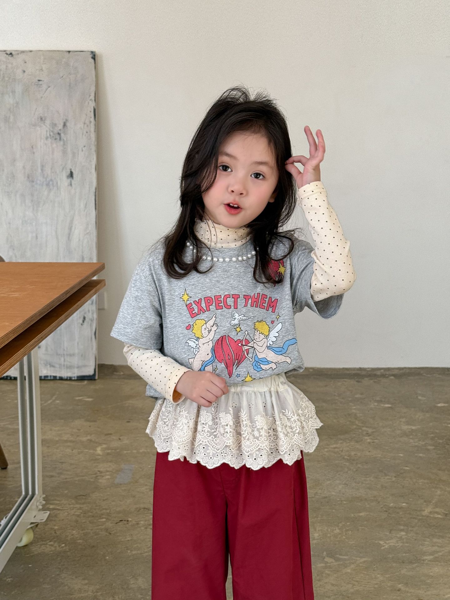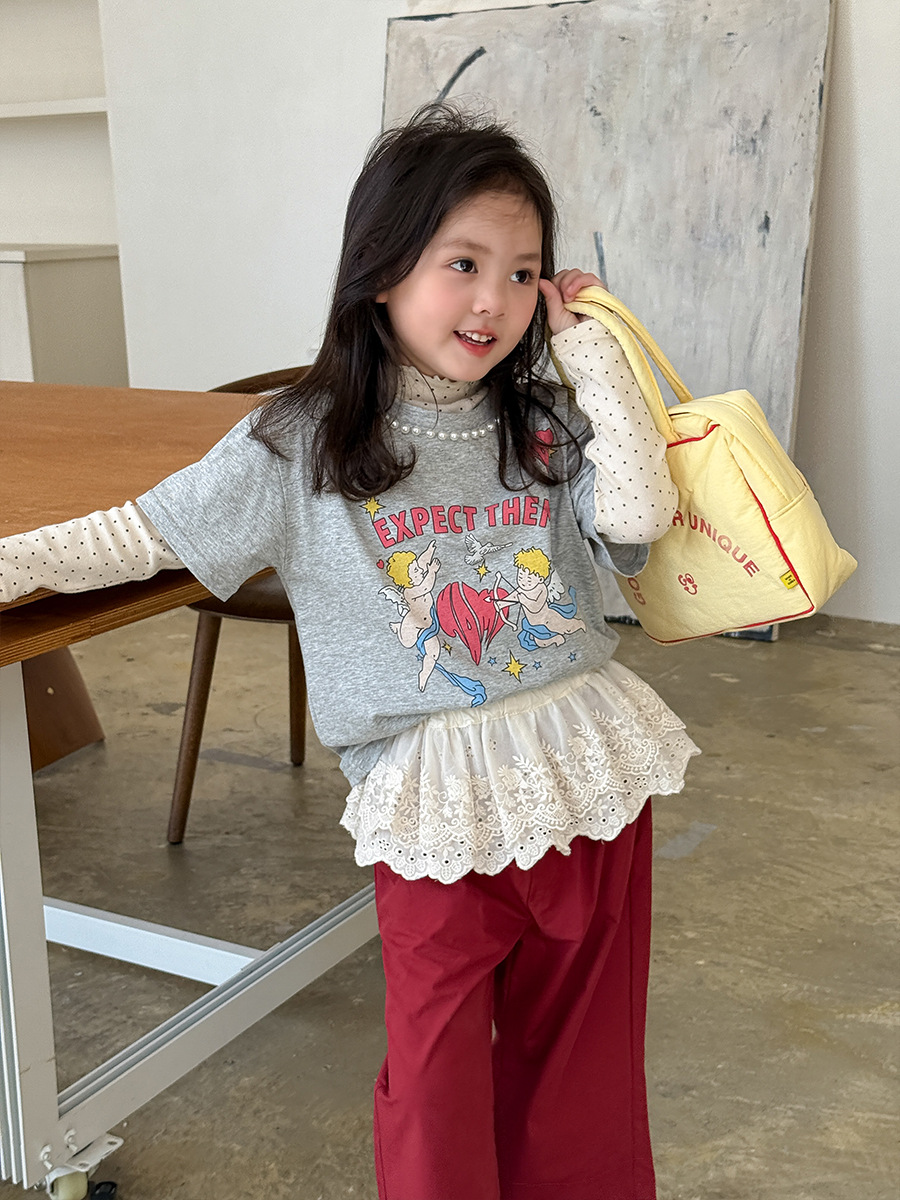 웨이무 아동복 여아 세트 2025 봄 신상 아동 한국 스타일 티셔츠 이너웨어 캐주얼 바지 유아복스토어 가기