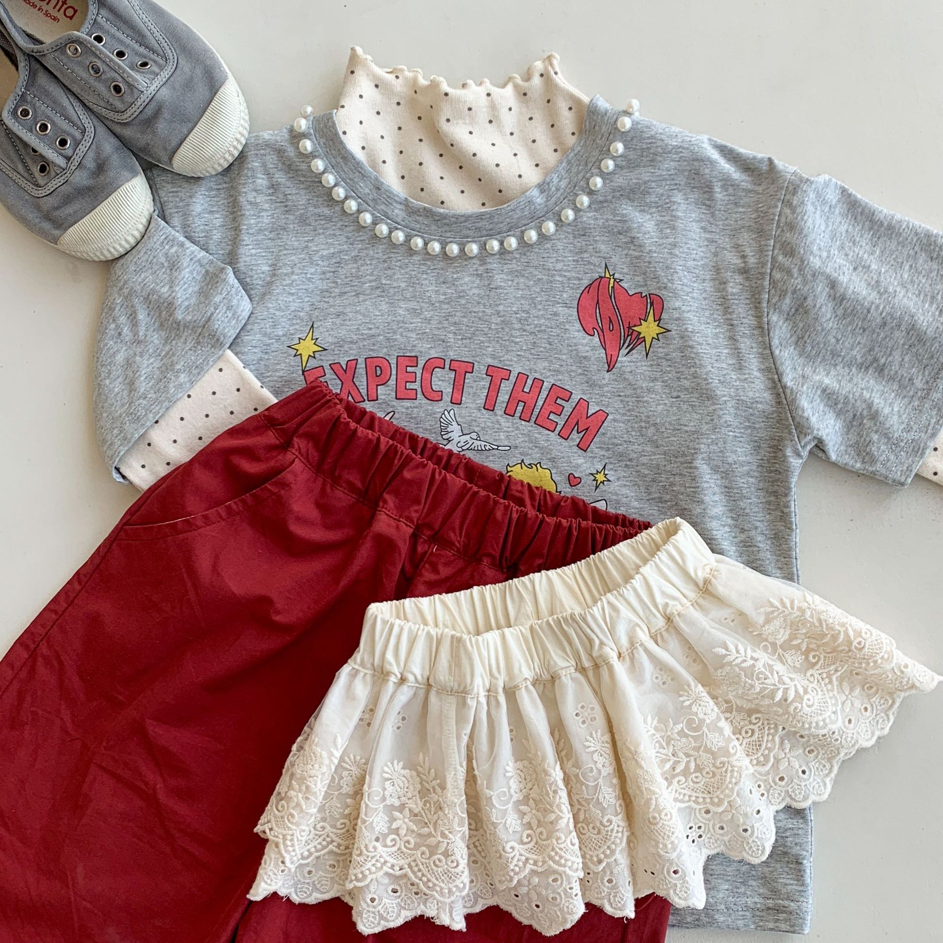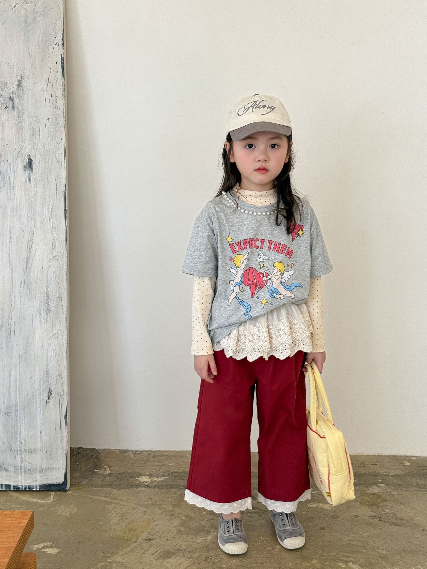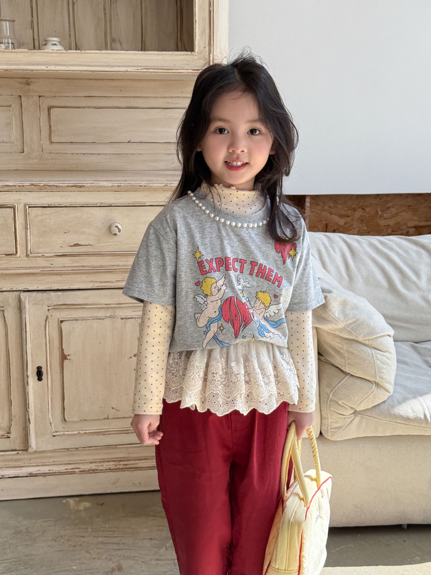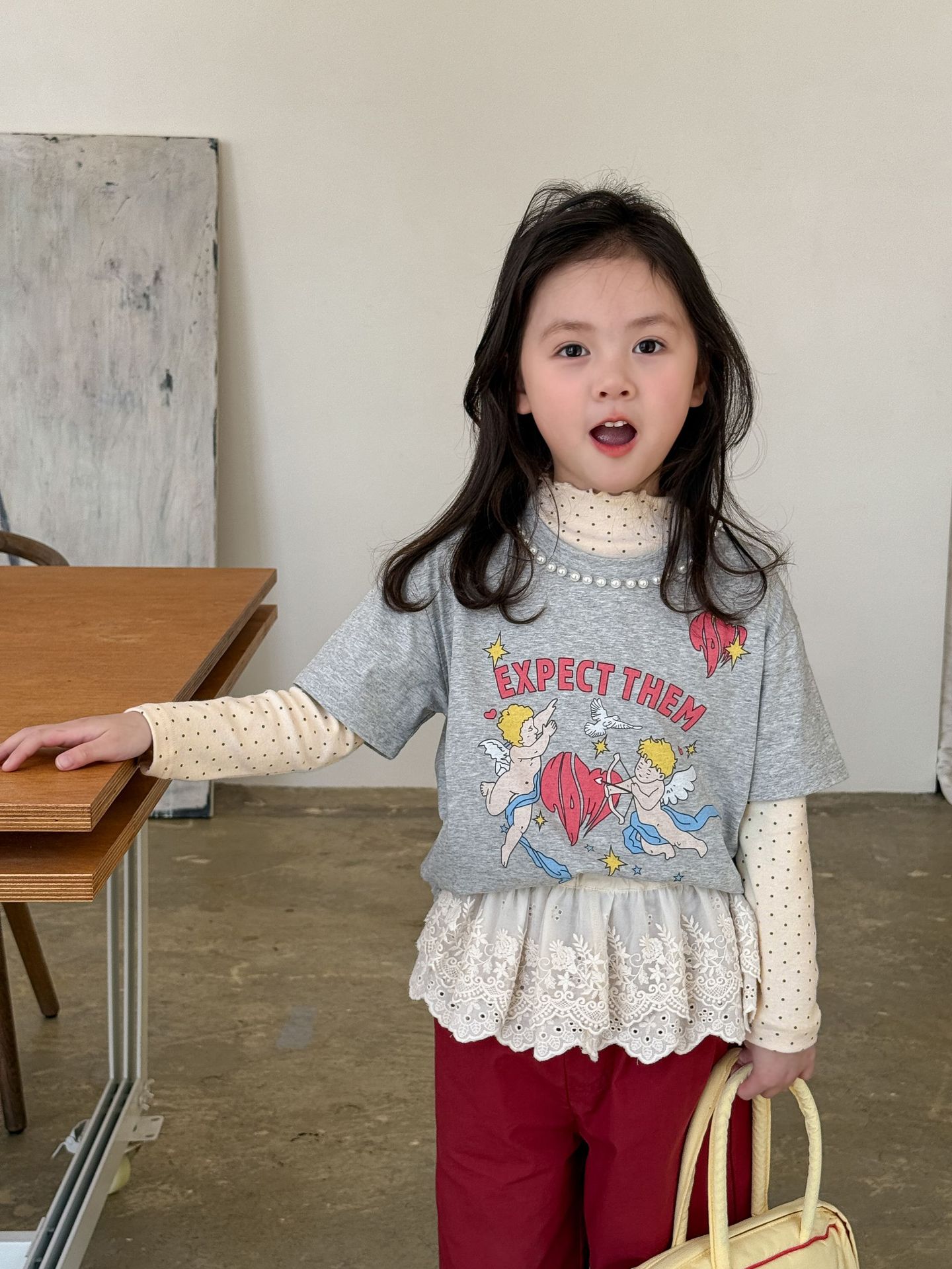 웨이무 아동복 여아 세트 2025 봄 신상 아동 한국 스타일 티셔츠 이너웨어 캐주얼 바지 유아복스토어 가기