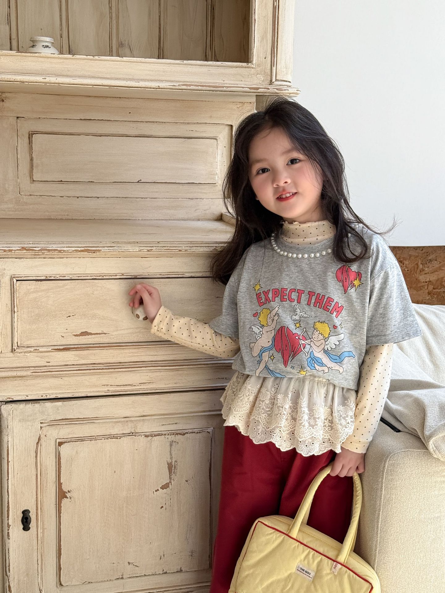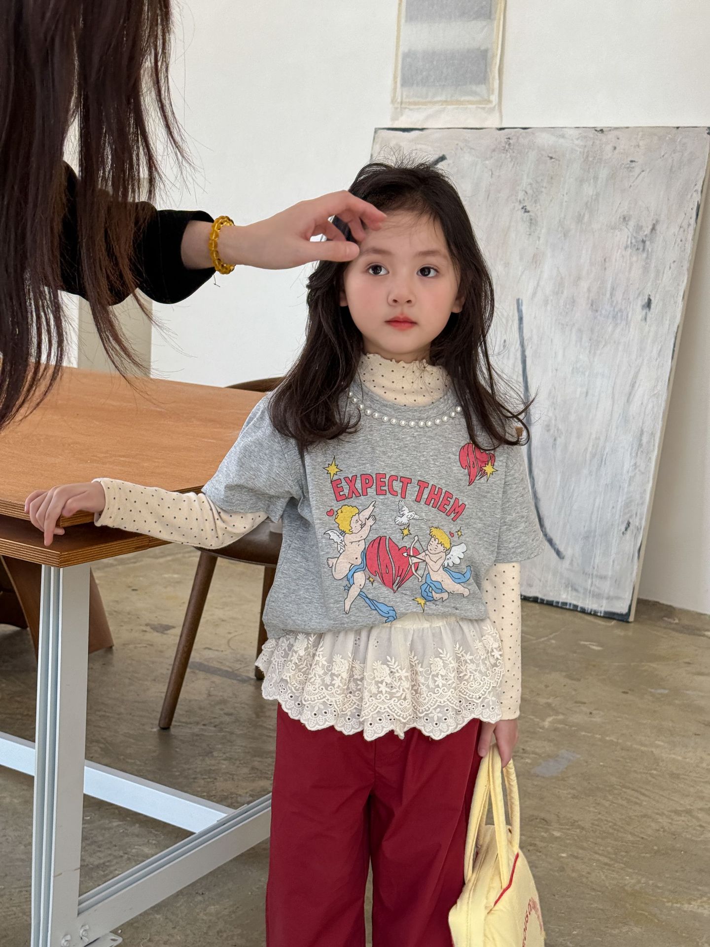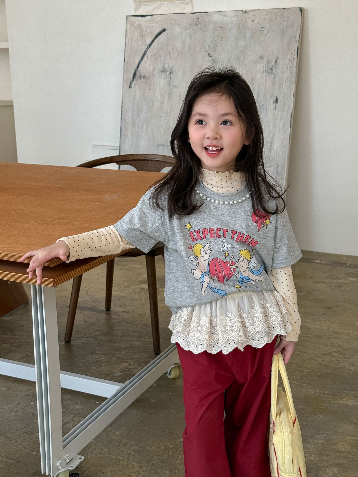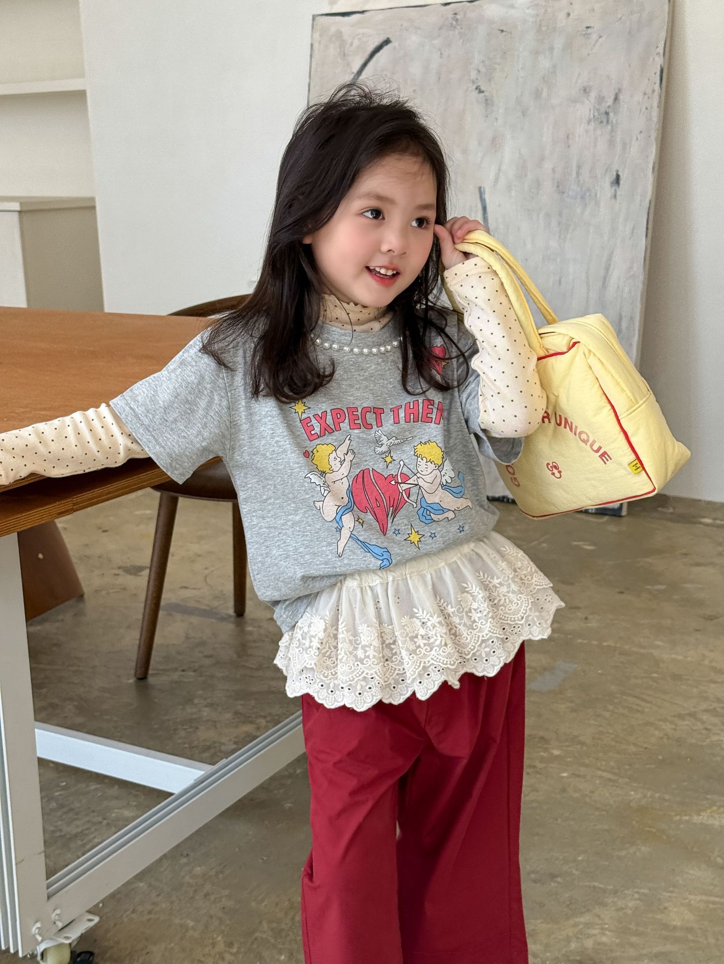 웨이무 아동복 여아 세트 2025 봄 신상 아동 한국 스타일 티셔츠 이너웨어 캐주얼 바지 유아복스토어 가기
