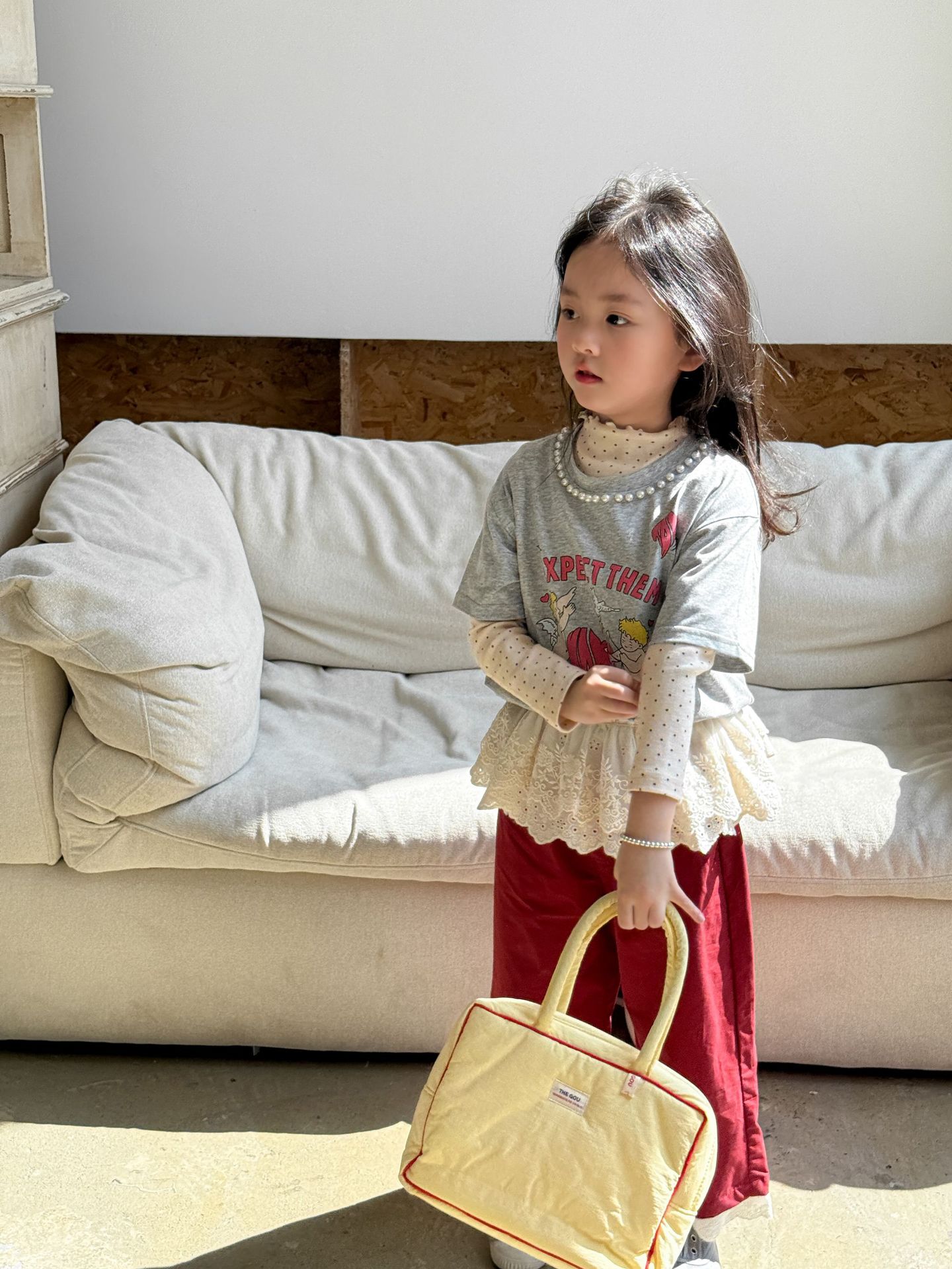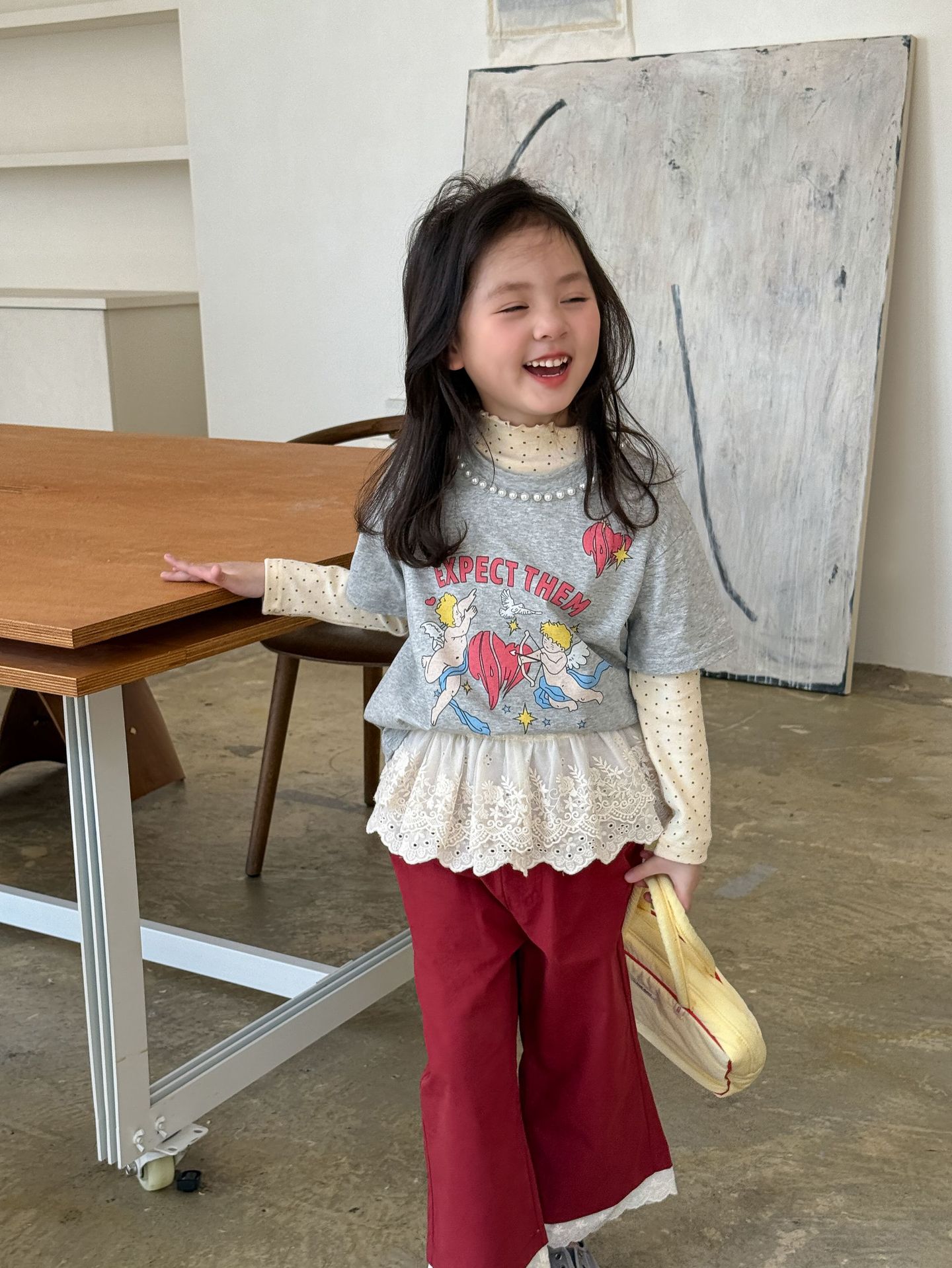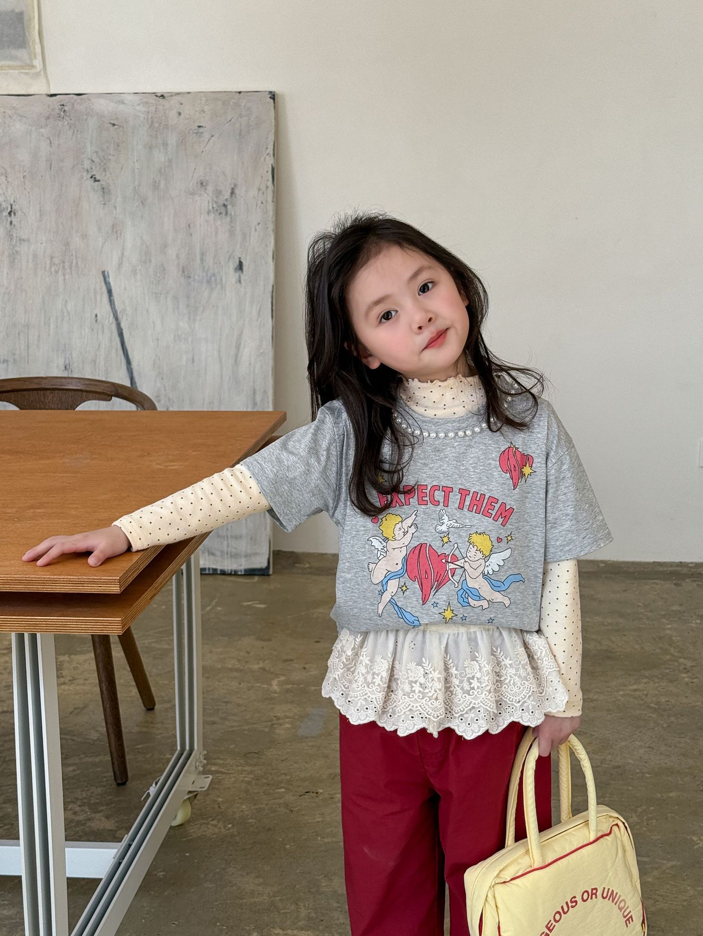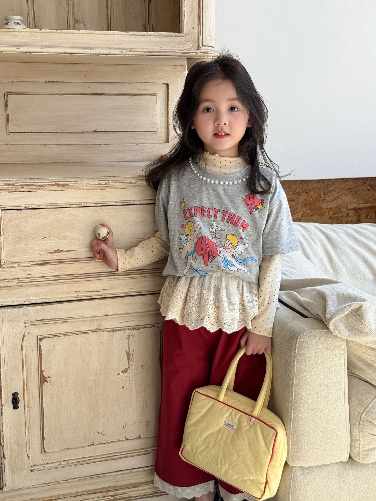 웨이무 아동복 여아 세트 2025 봄 신상 아동 한국 스타일 티셔츠 이너웨어 캐주얼 바지 유아복스토어 가기