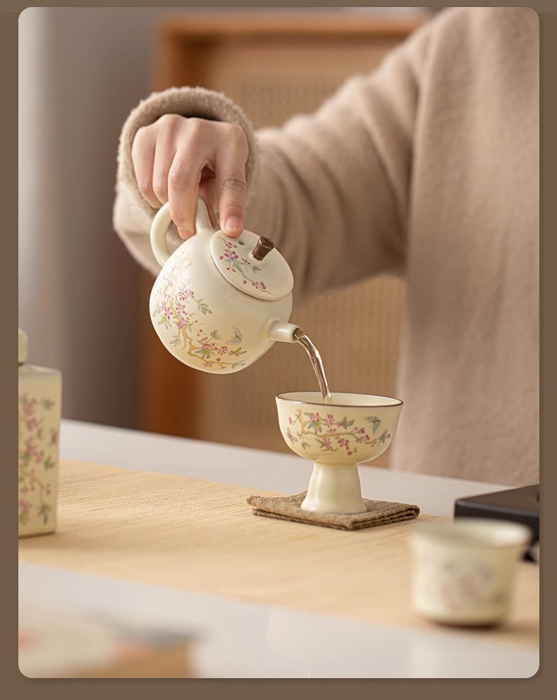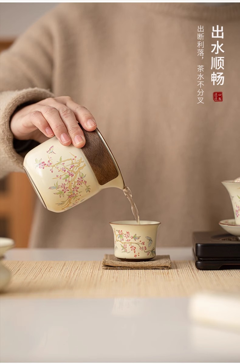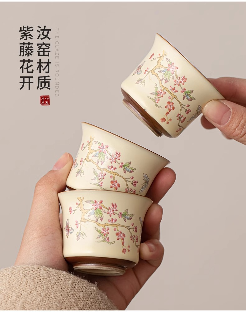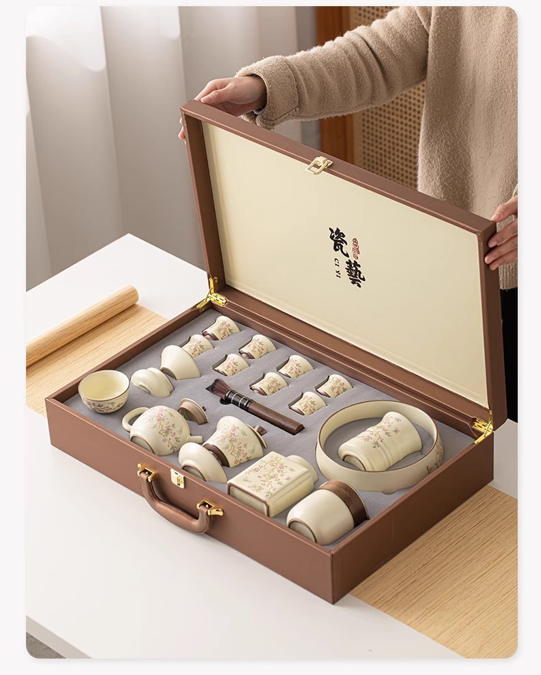 등나무 꽃 ru 가마 쿵푸 차 세트 중국 세라믹 가정용 거실 사무실 그릇 주전자 선물 상자 세트스토어 가기