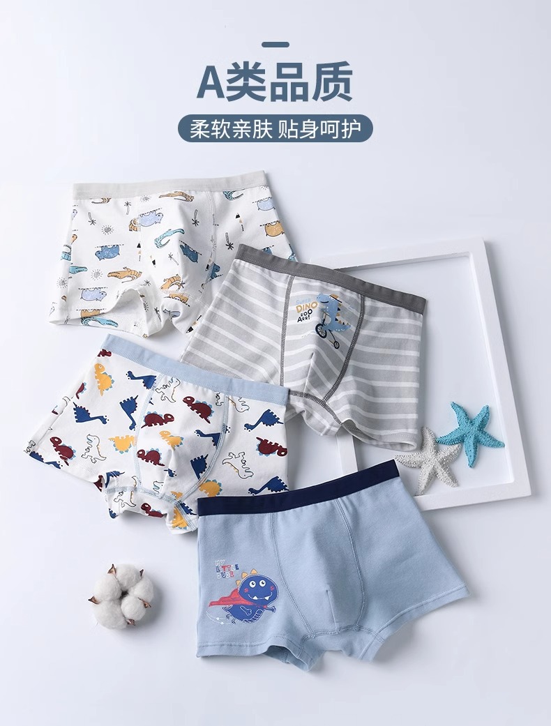 儿童内裤男童纯棉a类平角裤宝宝发育期小男孩中大童四角不夹屁屁