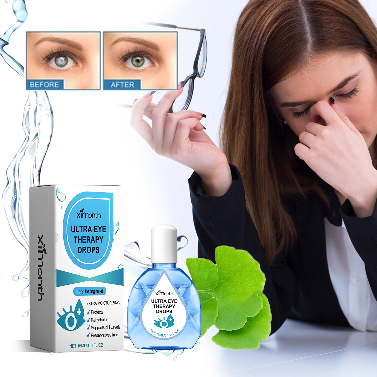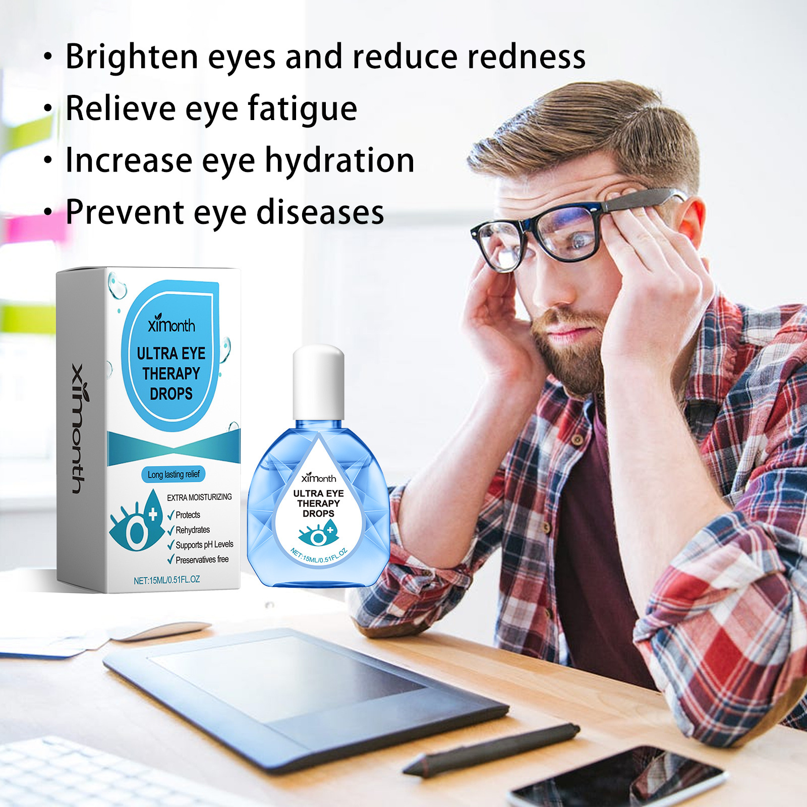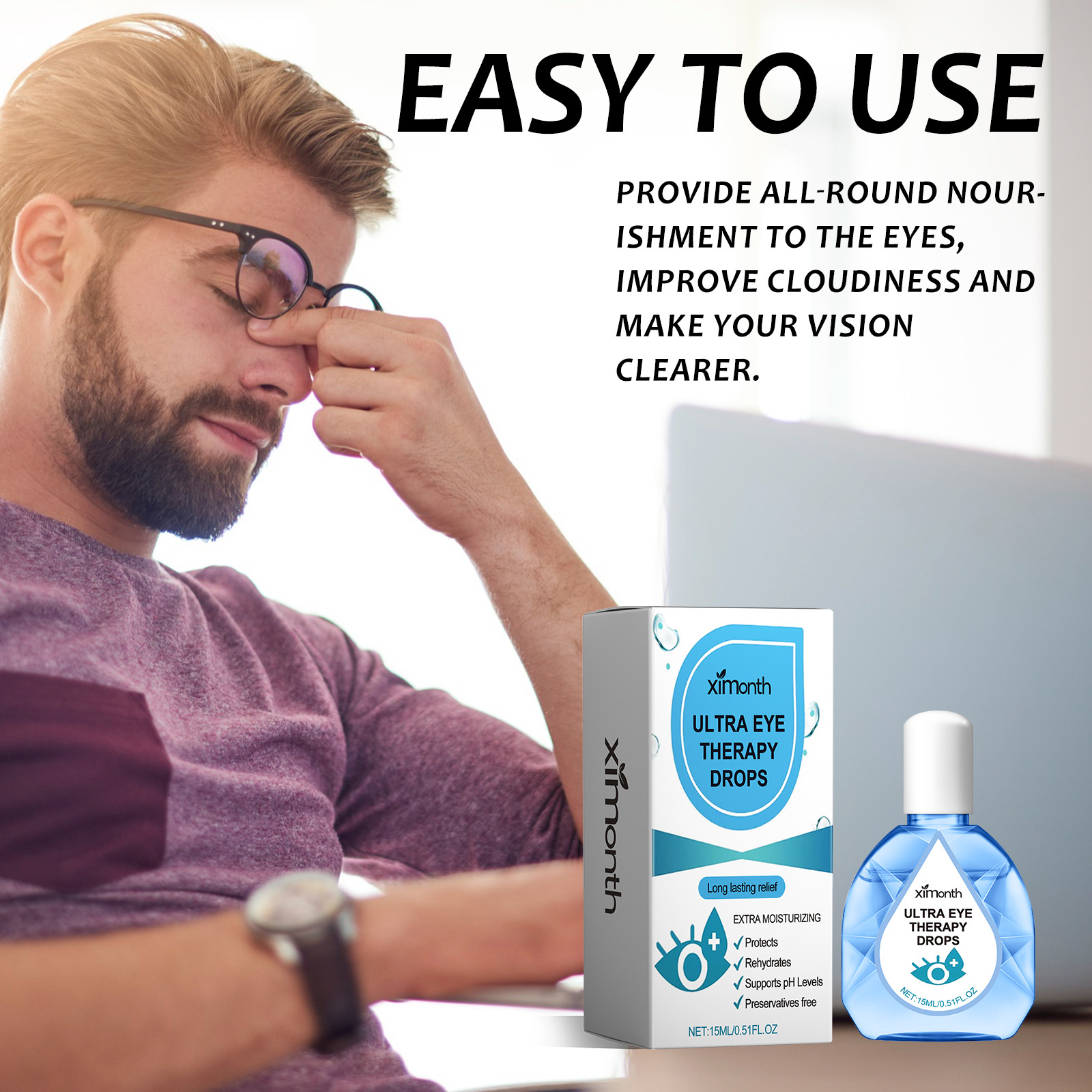 눈 피로 완화를위한 XIMONTH 눈 관리 액체 안구 건조 수렴 시력 흐리게 눈 관리 보습 액체