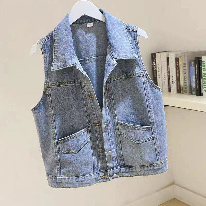 데님 조끼 여자 2025 년 여름 새로운 패션 짧은 작업복 조끼 작은 올매치 민소매 얇은 조끼스토어 가기