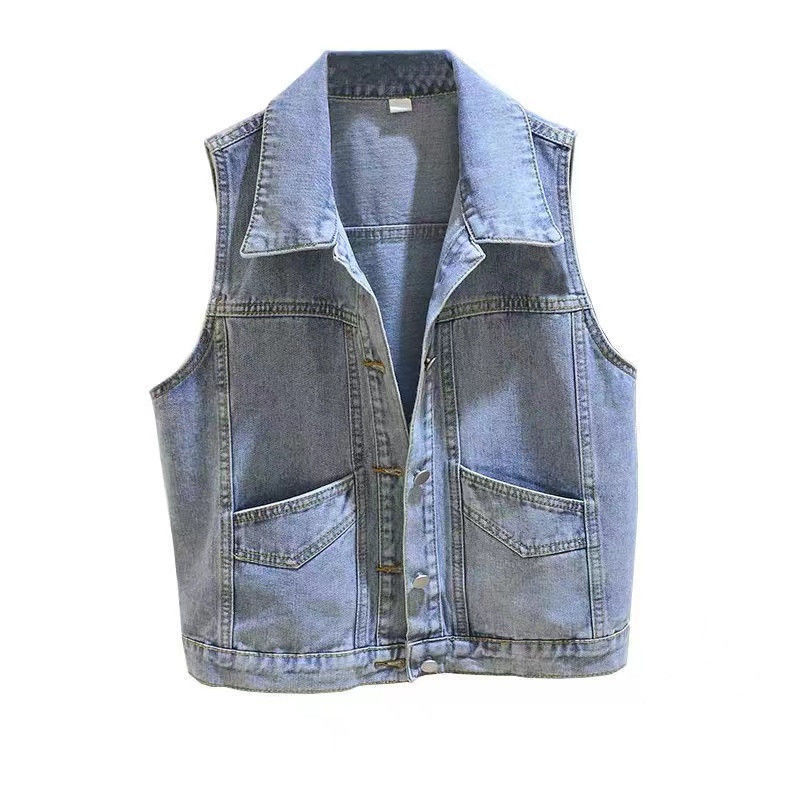 데님 조끼 여자 2025 년 여름 새로운 패션 짧은 작업복 조끼 작은 올매치 민소매 얇은 조끼