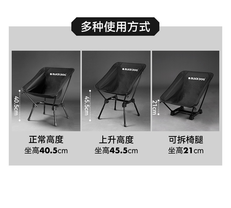 검은 개 야외 문 의자 휴대용 알루미늄 합금 접는 의자 블랙 캠핑 울트라 라이트 등받이 의자
