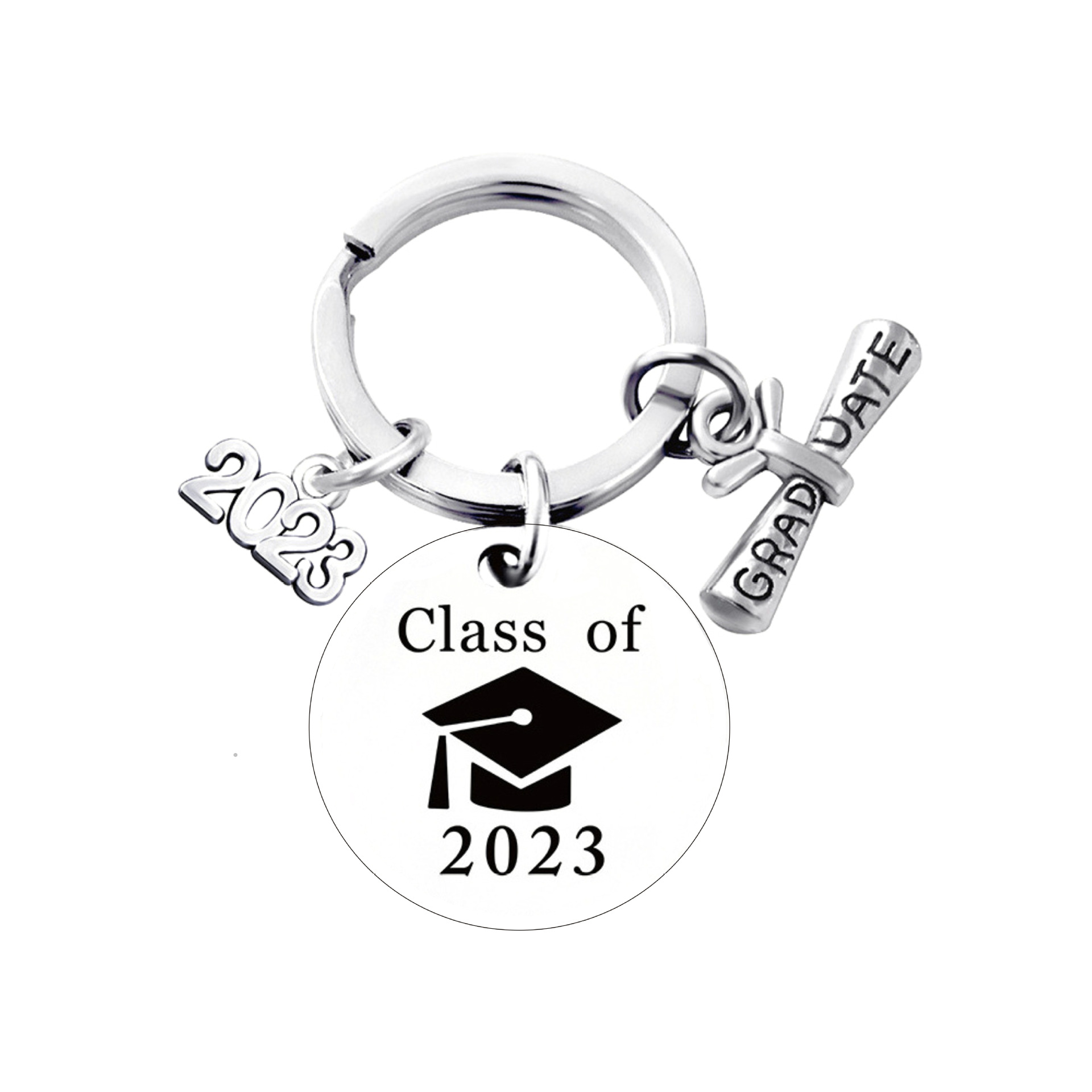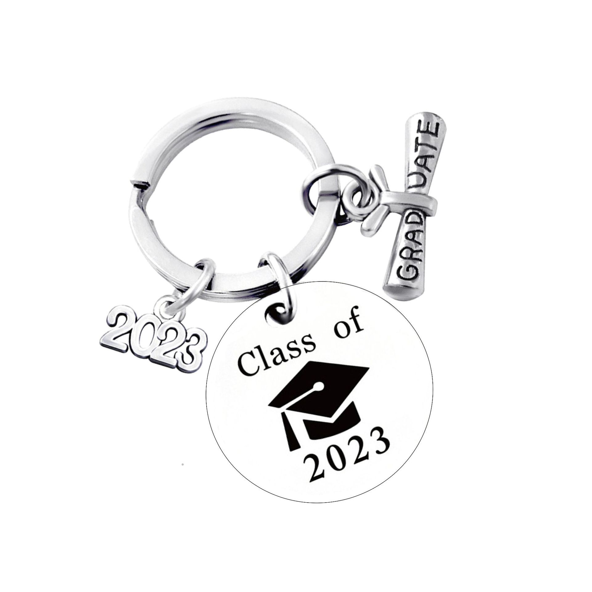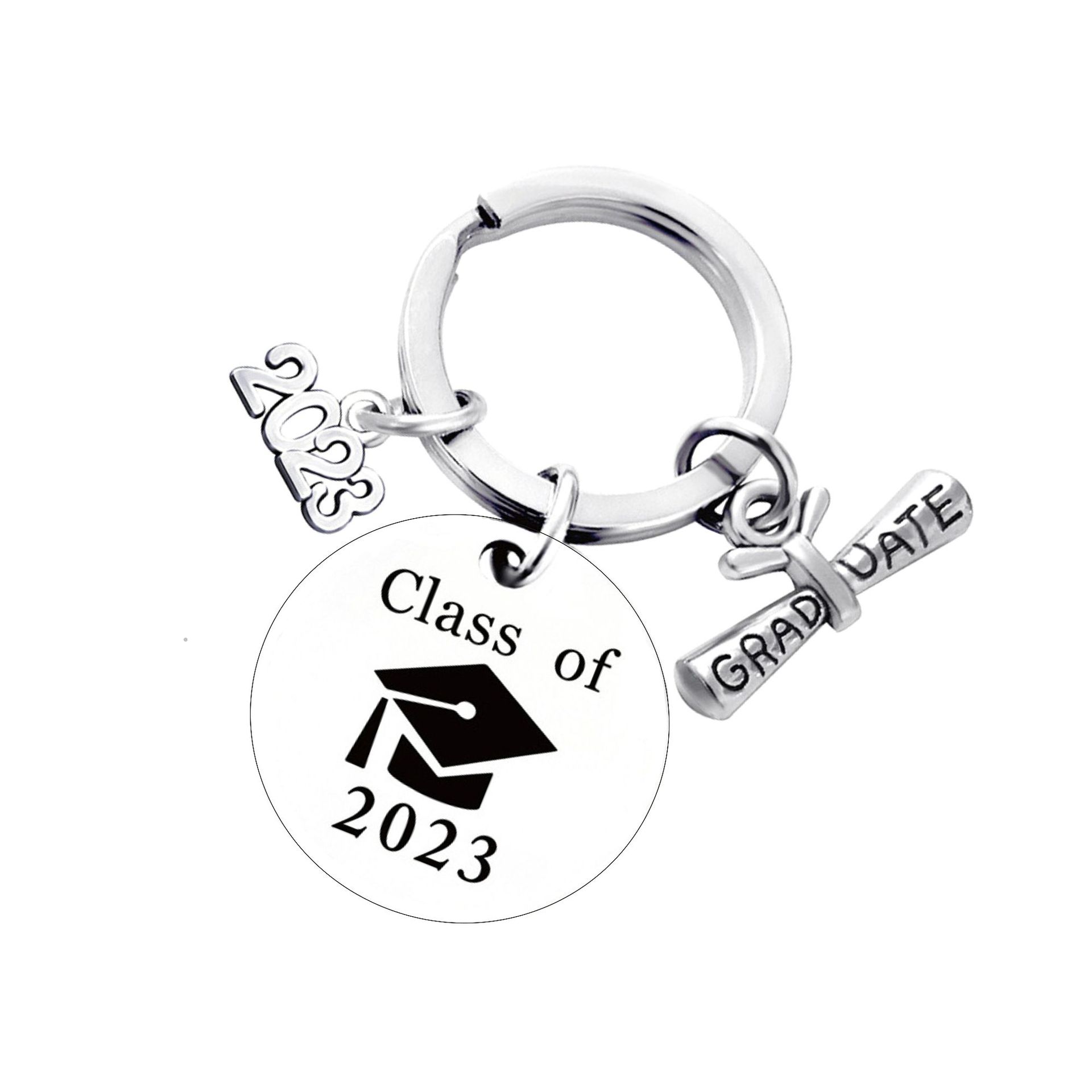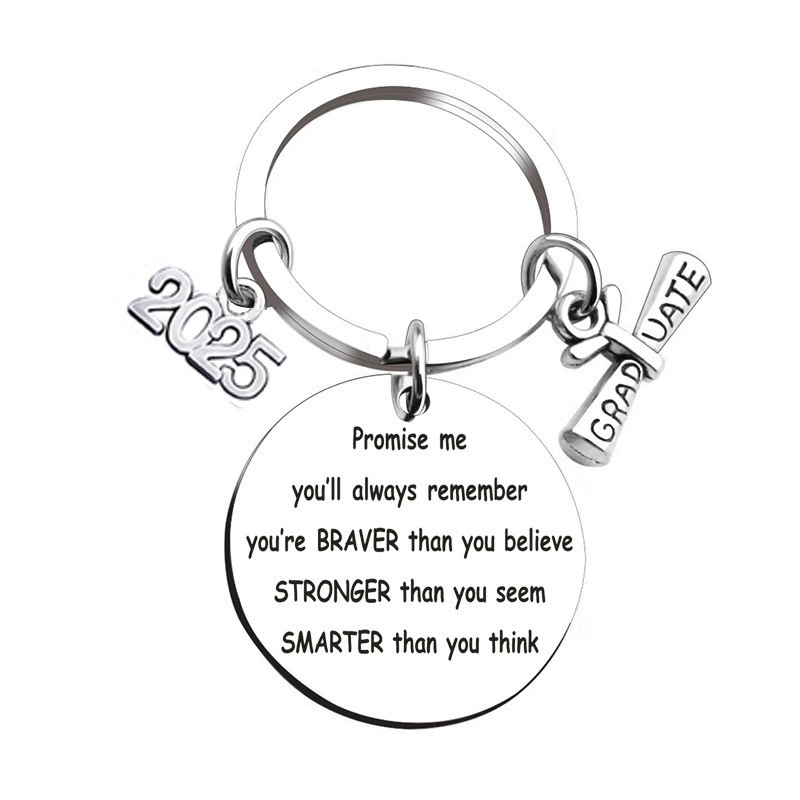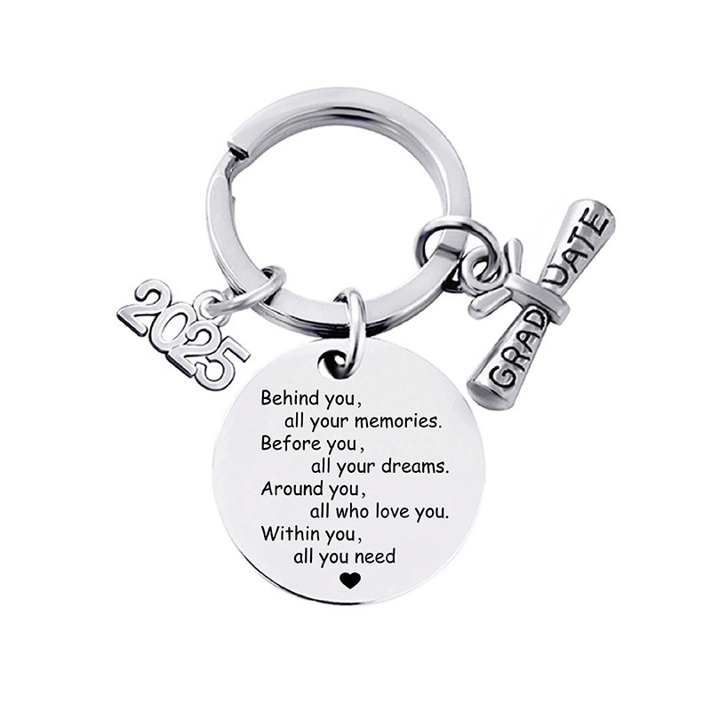 스테인레스 스틸 라운드 유럽과 미국의 국경 2025 졸업 시즌 선물 레터링 금속 키 체인 키 체인 펜던트스토어 가기