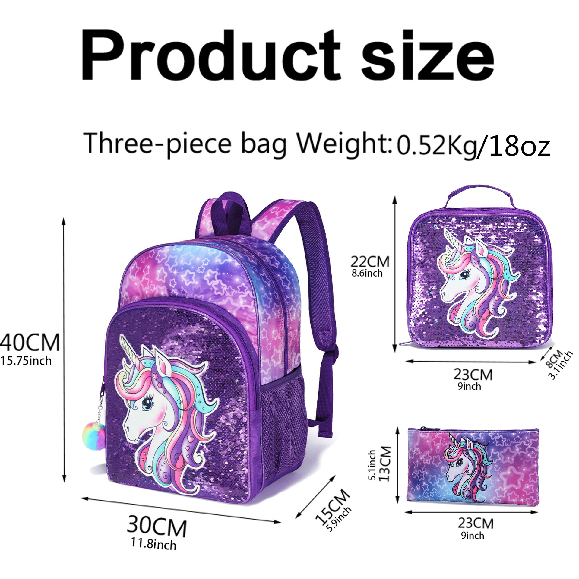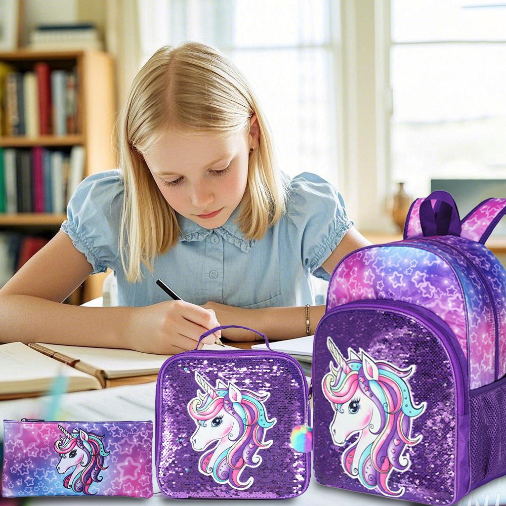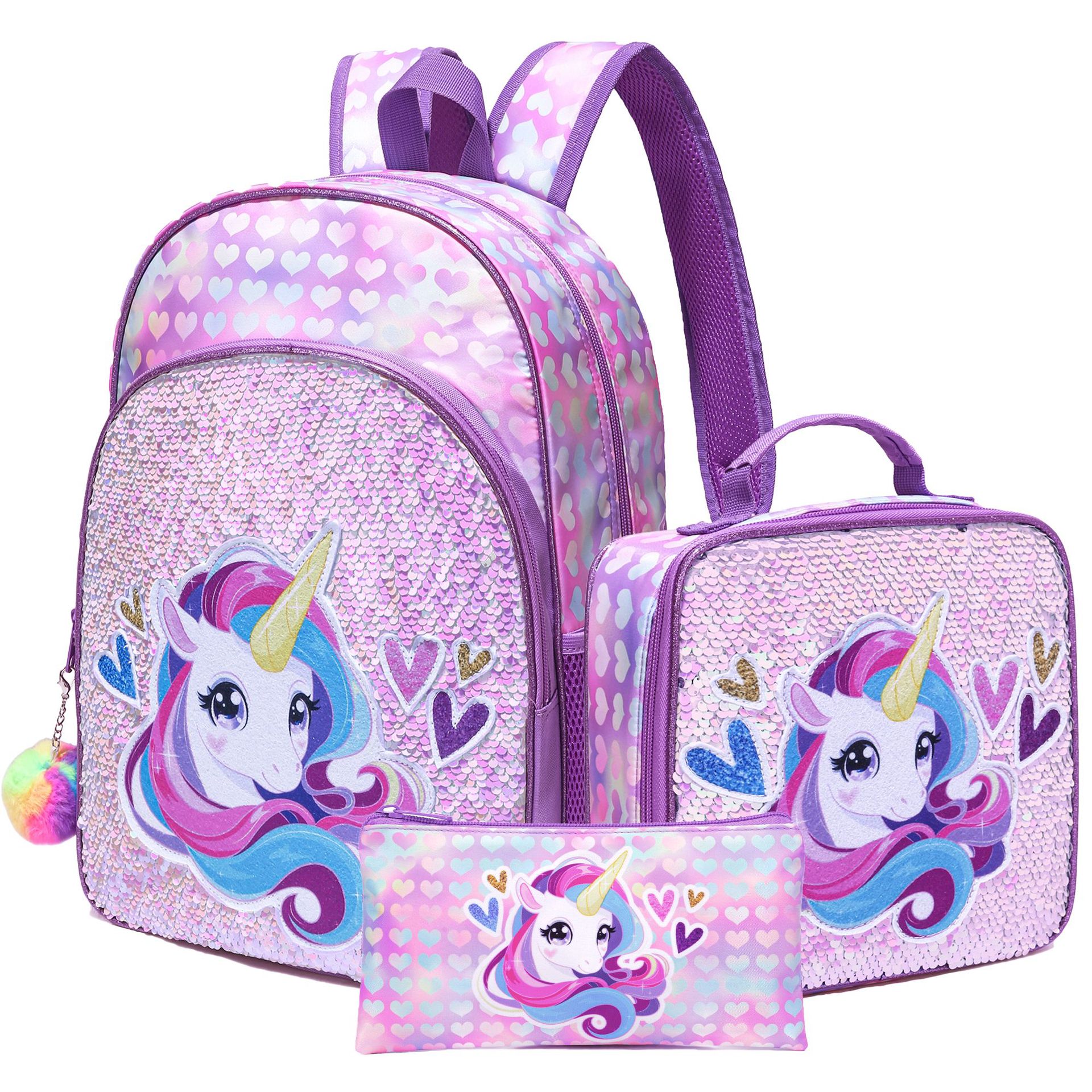 유니콘 인어 우주 비행사 세 조각 세트 스쿨백, 어린이 학생 귀여운 배낭스토어 가기