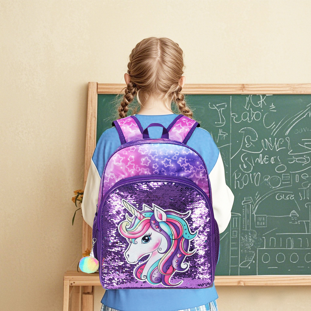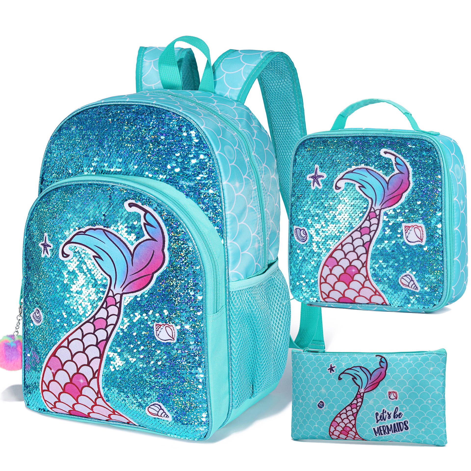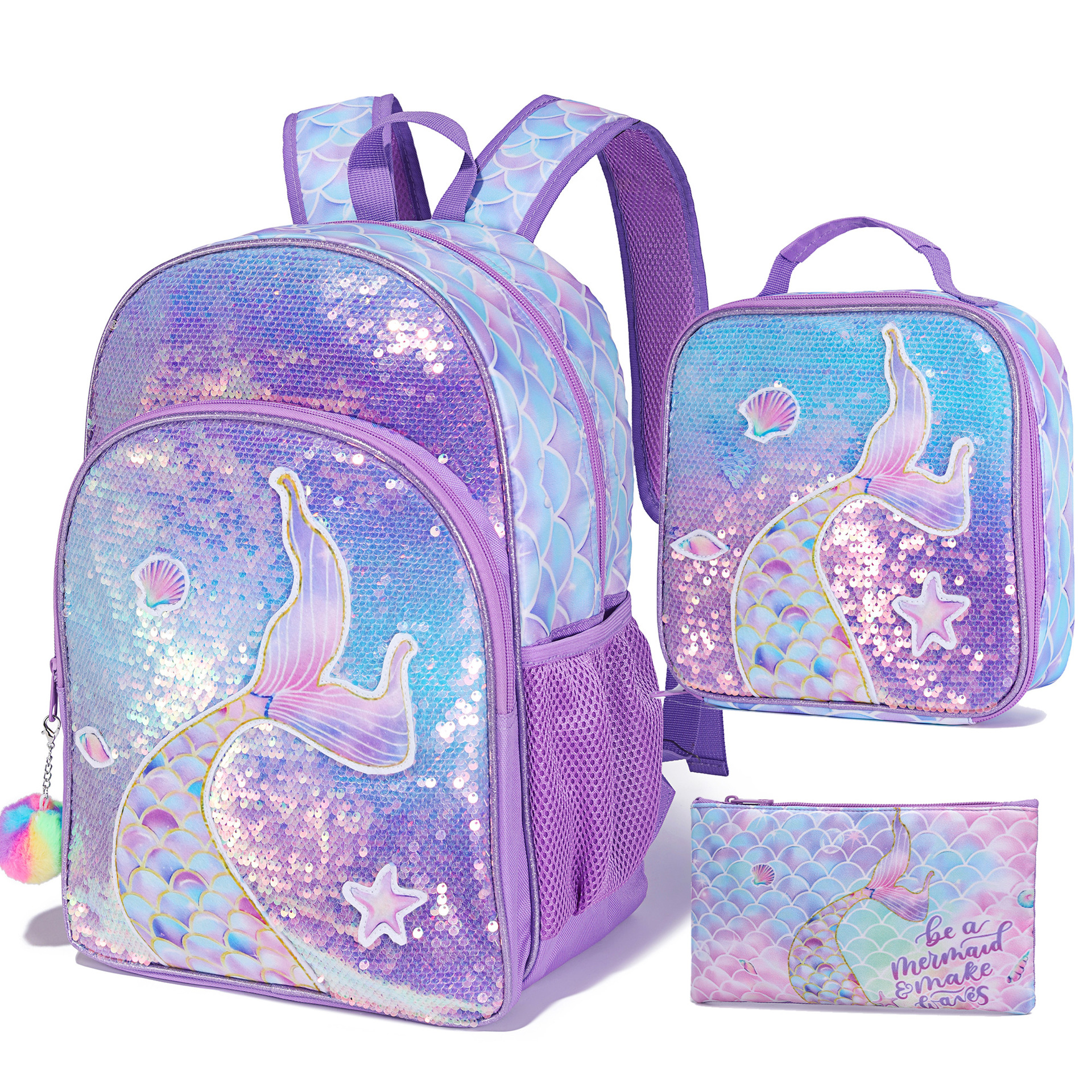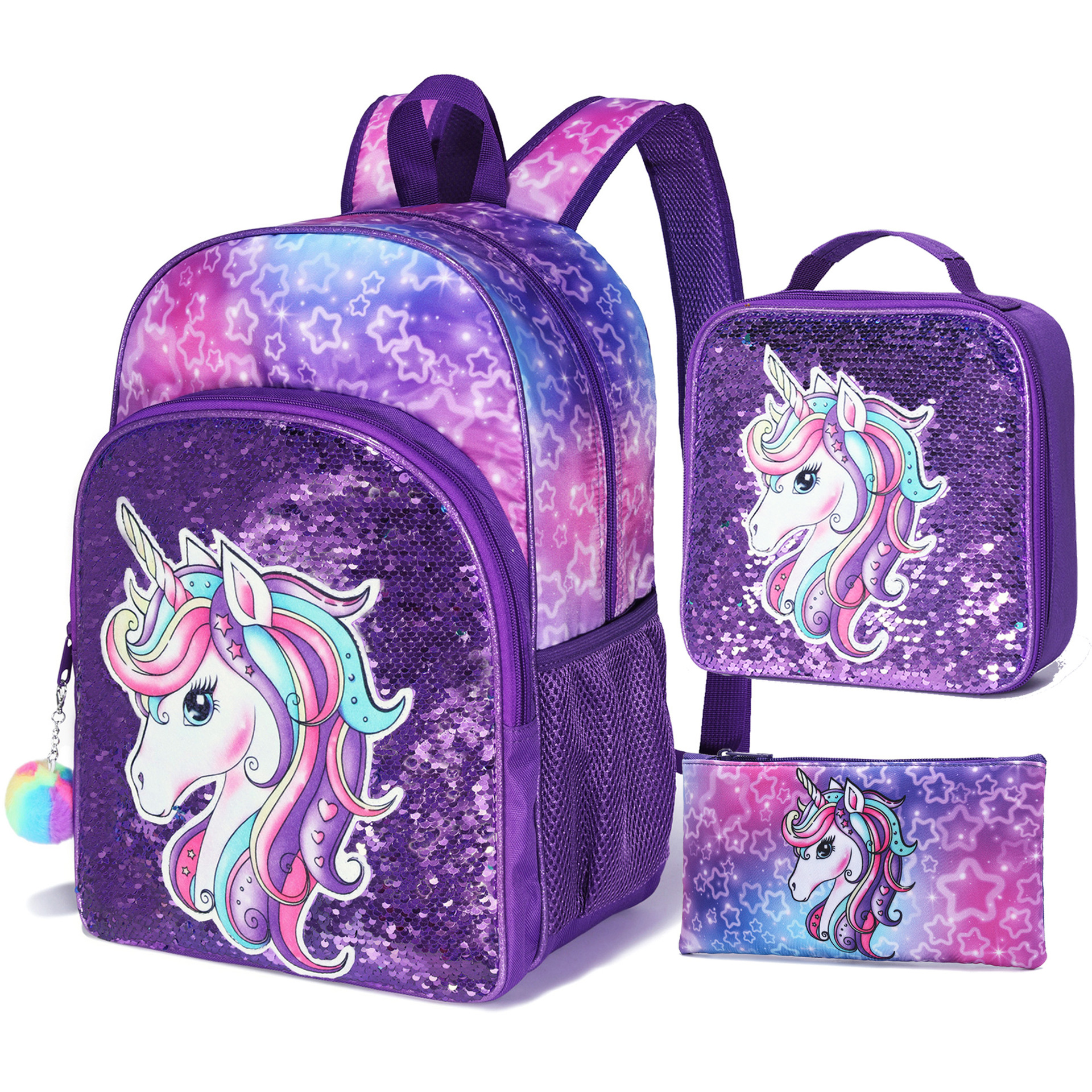 유니콘 인어 우주 비행사 세 조각 세트 스쿨백, 어린이 학생 귀여운 배낭스토어 가기