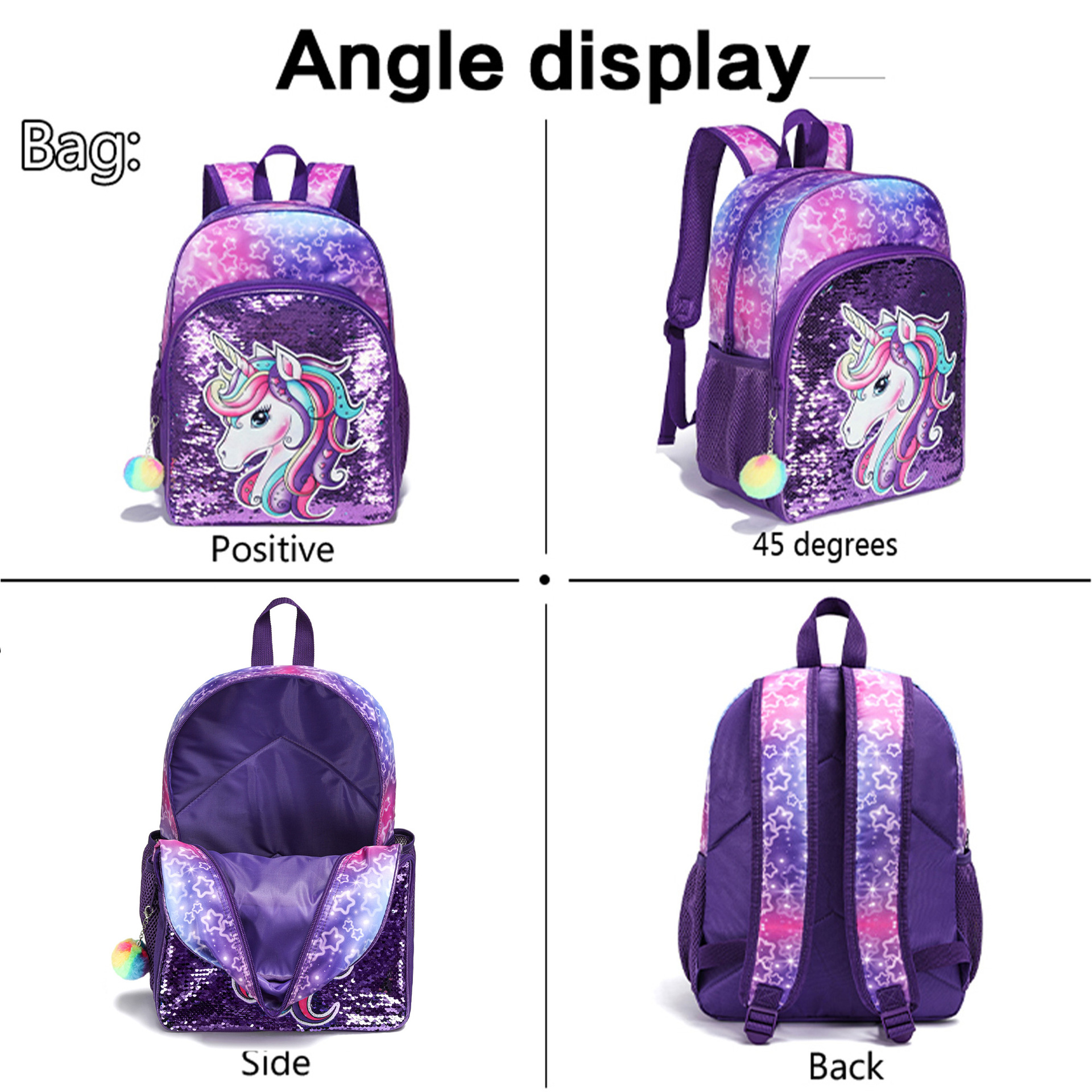 유니콘 인어 우주 비행사 세 조각 세트 스쿨백, 어린이 학생 귀여운 배낭