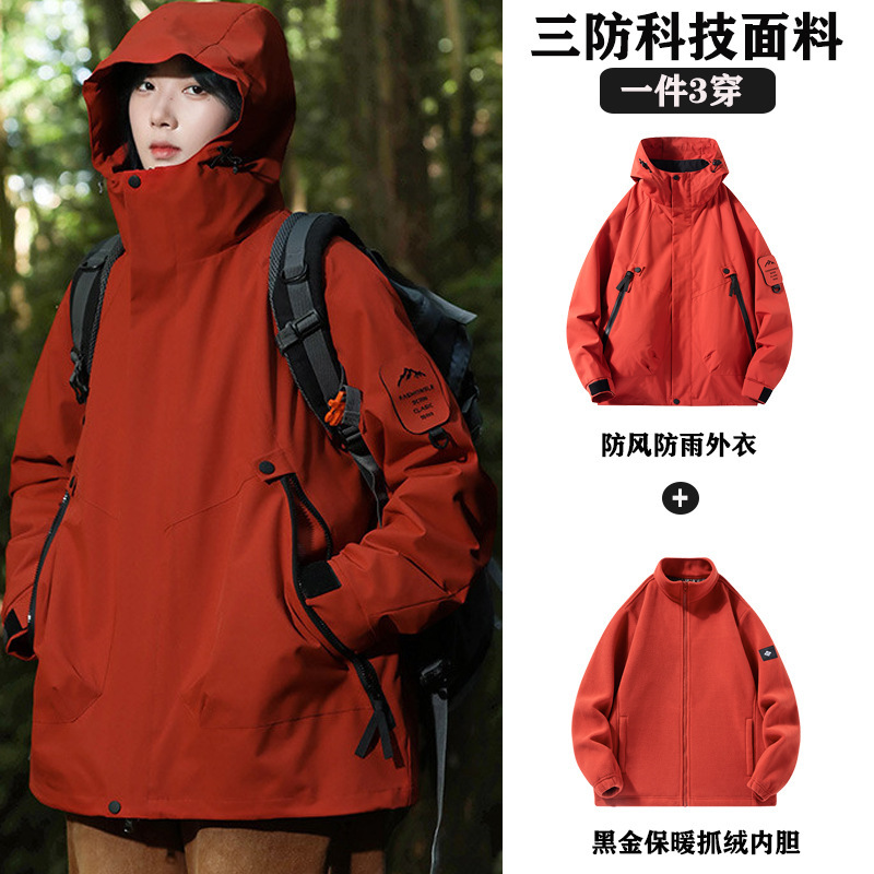 Vermilion Bird Red Women's Spring Coat 플러스 사이즈 Windproof Climbing Overalls 남성용 Three-in-One Anti-Splashing Water Jacket스토어 가기
