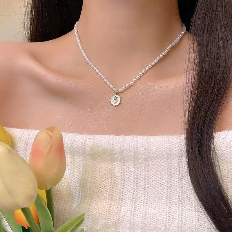 부드러운 스파이스 소녀 한국식 진주 여성 체인 틈새 올 매치 라이트 럭셔리 하이 엔드 스타일 펜던트 Ins 샤넬 스타일 쇄골 체인스토어 가기