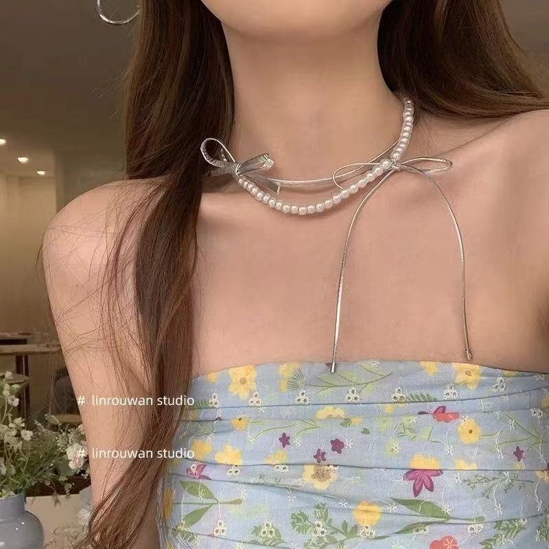 부드러운 스파이스 소녀 한국식 진주 여성 체인 틈새 올 매치 라이트 럭셔리 하이 엔드 스타일 펜던트 Ins 샤넬 스타일 쇄골 체인