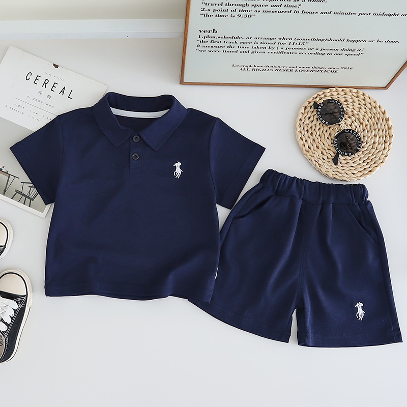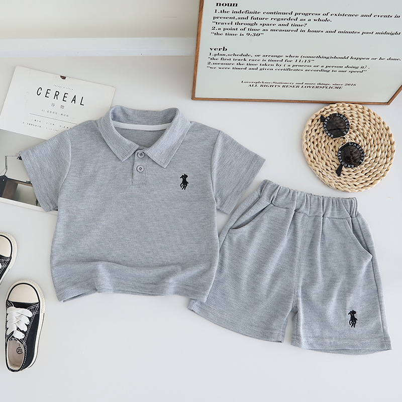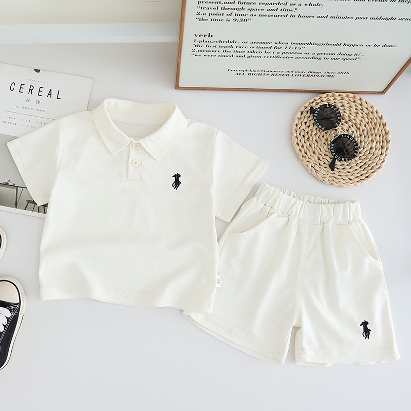 남자들의 여름 세트 잘 생긴 2025 새로운 한국 스타일 어린이 서양식 짧은 소매 아기의 얇은 폴로 셔츠 투피스 세트스토어 가기