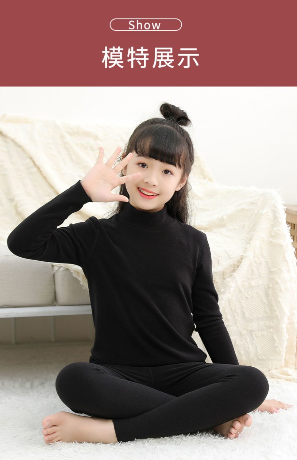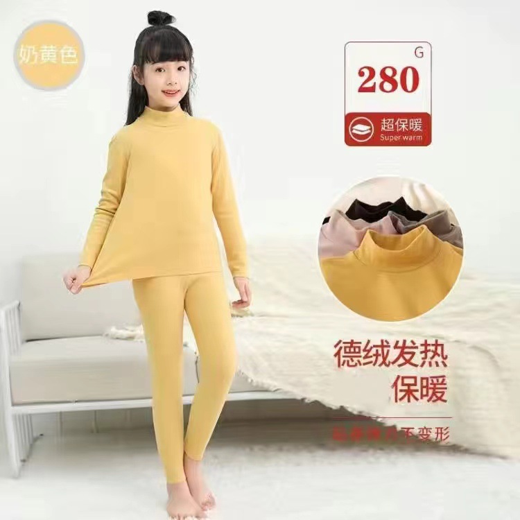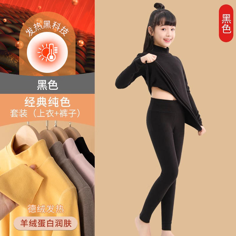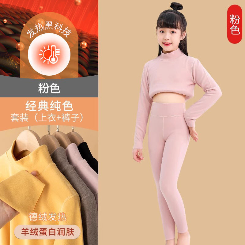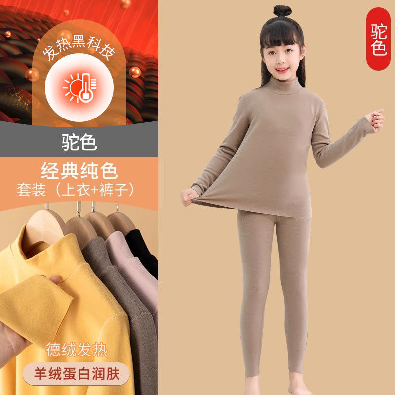 어린이 따뜻한 세트 소녀베이스 셔츠 아기 중간 및 큰 어린이 벨벳 난방 높은 칼라 속옷 기모 두꺼운 가을 옷스토어 가기