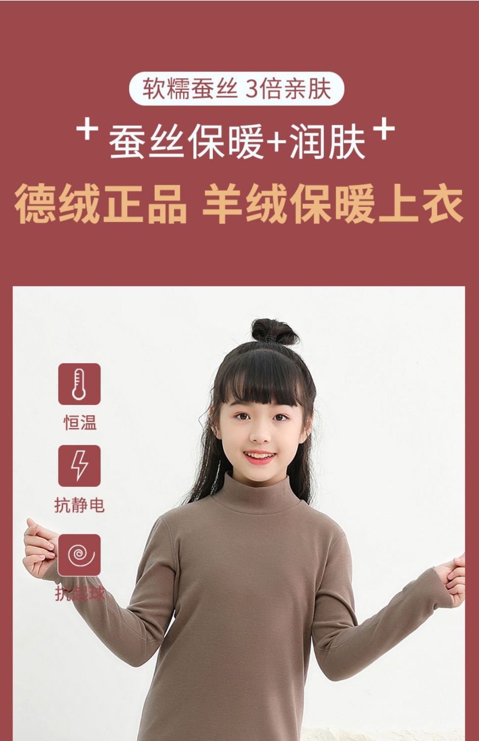 어린이 따뜻한 세트 소녀베이스 셔츠 아기 중간 및 큰 어린이 벨벳 난방 높은 칼라 속옷 기모 두꺼운 가을 옷