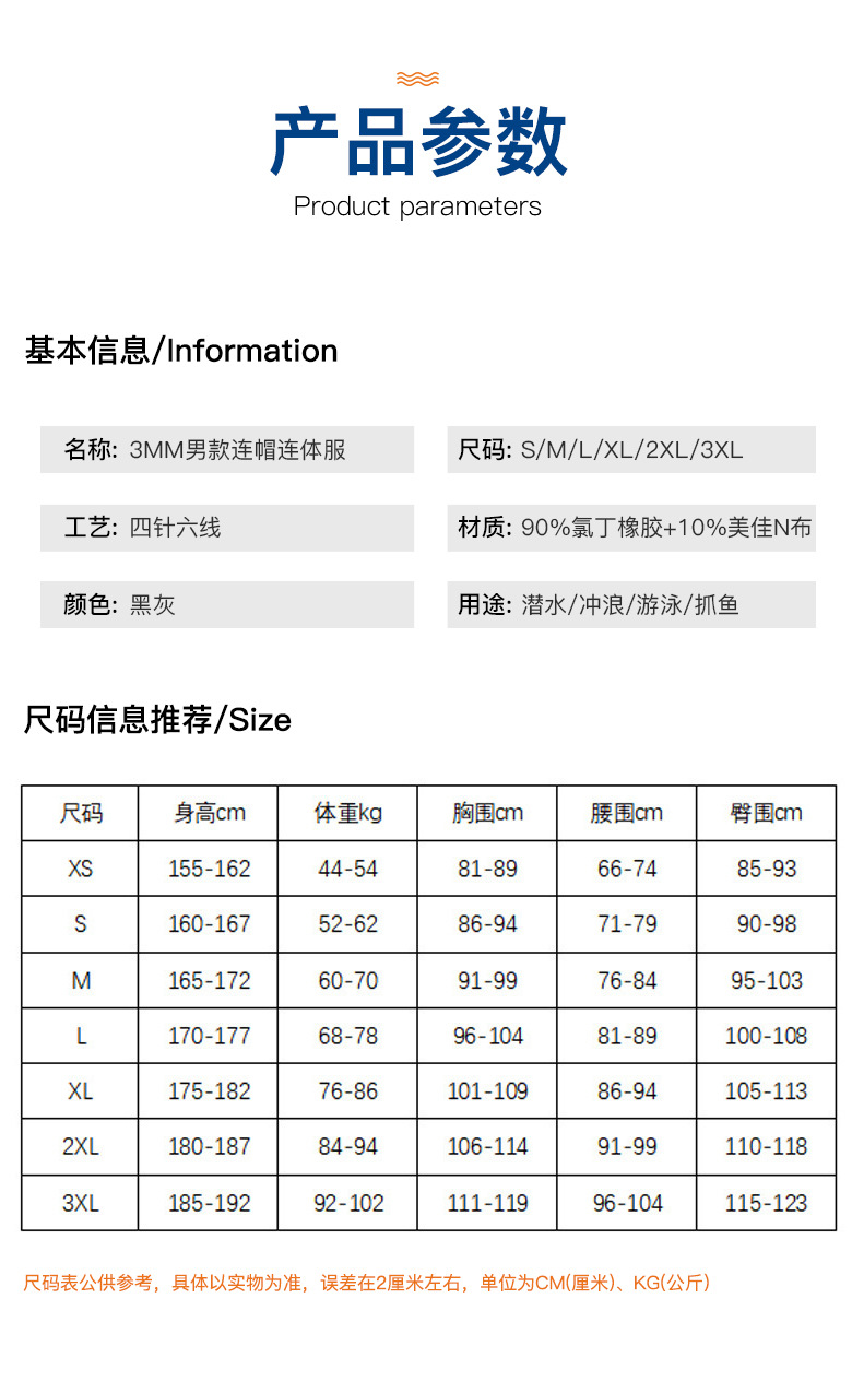3mm 한 몸 후드 다이빙 세트 남자 서핑 세트 스쿠버 다이빙 세트 무료 다이빙 어머니 세트 차가운 보호 따뜻한 세트