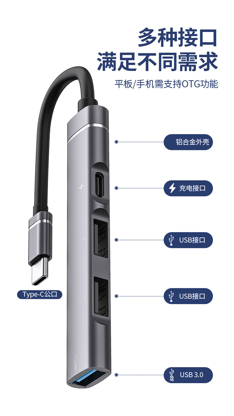 도매 유형-c-USB3.0 익스텐더 HUB 스플리터 유형-c 도킹 스테이션 PD 충전 OTG 어댑터 케이블