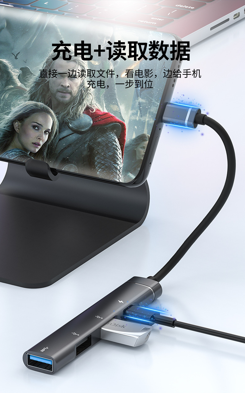 도매 유형-c-USB3.0 익스텐더 HUB 스플리터 유형-c 도킹 스테이션 PD 충전 OTG 어댑터 케이블스토어 가기