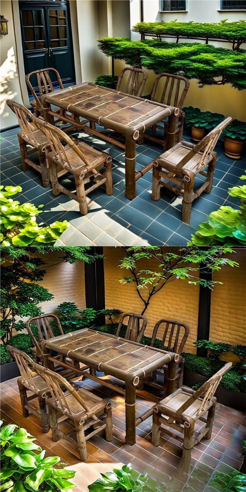 대나무 테이블 빈티지 안뜰 조합 빈티지 대나무 테이블 야외 대나무 테이블 및 의자 대나무 광장 테이블 차 테이블 야외 대나무 테이블 대나무 테이블 대나무 의자