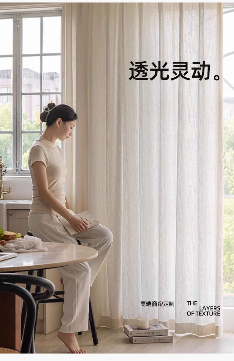 Fufeng 거즈 커튼은 빛을 투과하지만 사람을 투과할 수 없으며 복고풍 스타일의 커튼, 발코니 거실용 얇은 거즈 커튼, 고급 자카드 린넨 거즈 커튼