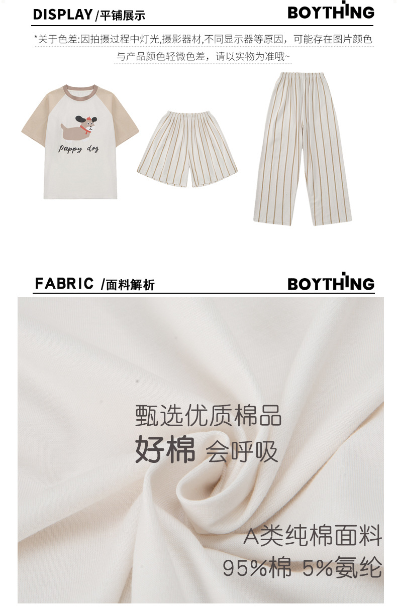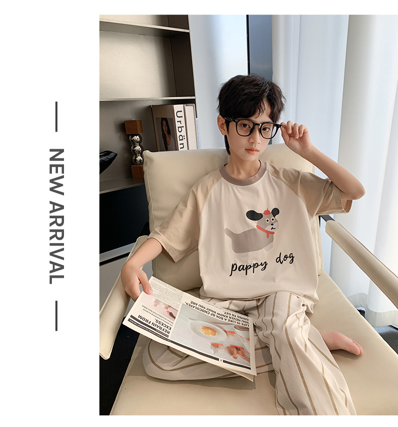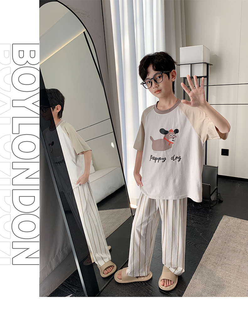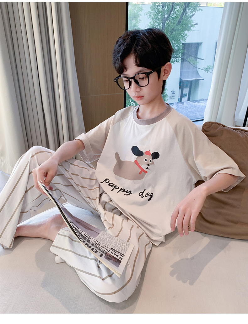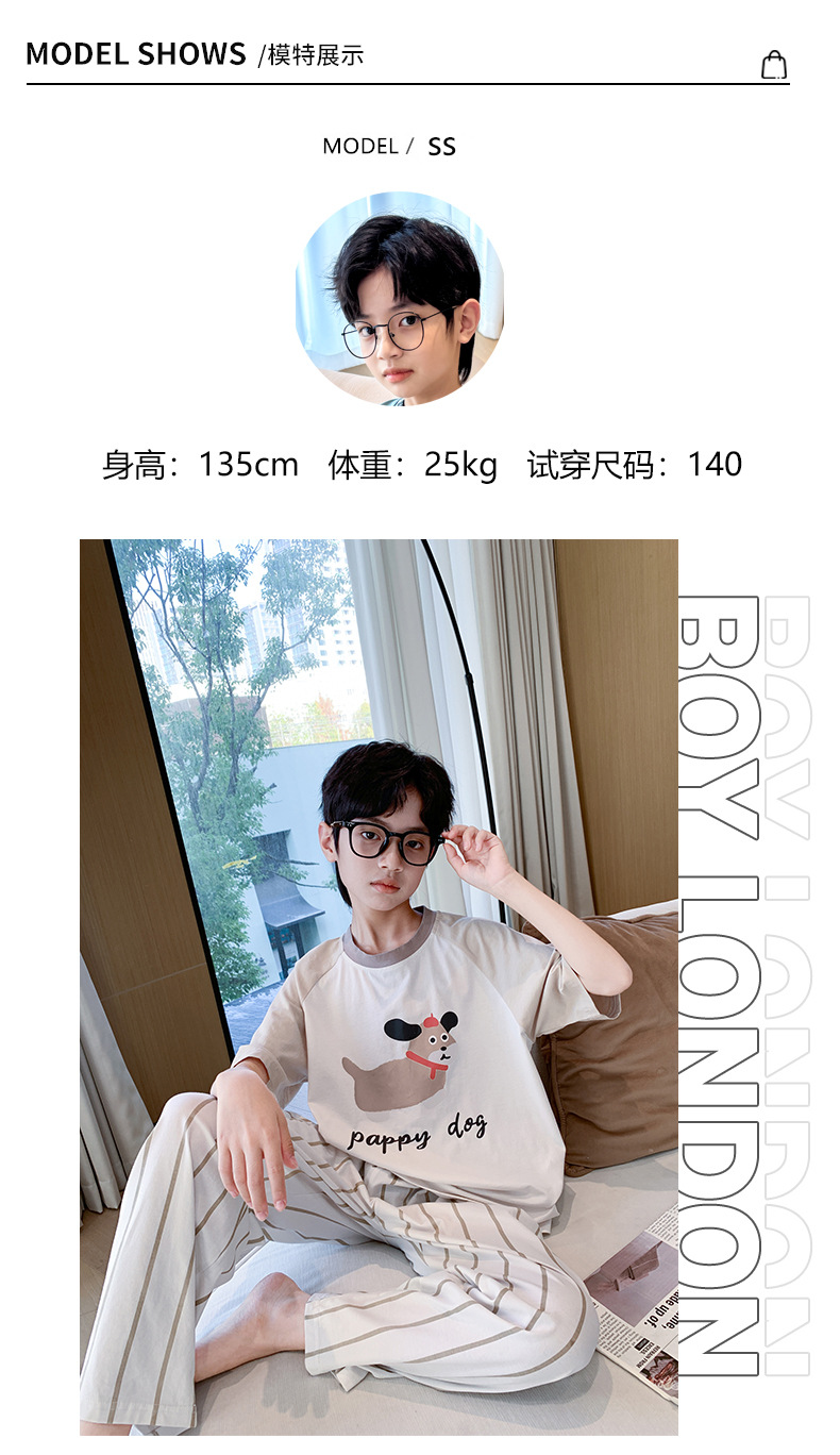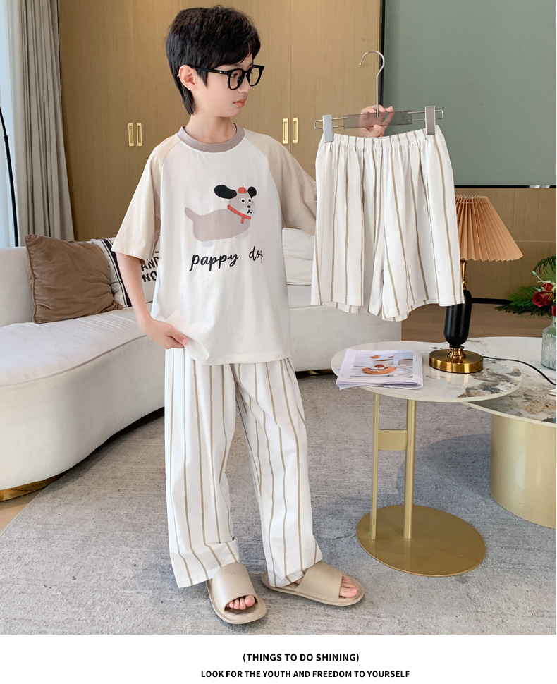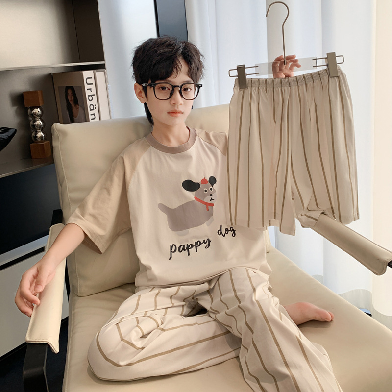 소년 중학생 여름 얇은 반팔 3 피스 세트 2025 새로운 대형 아동복을위한 클래스 A 순면 잠옷스토어 가기