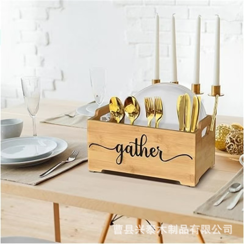 간단한 나무 가정용 주방 식기 저장 상자 휴대용 야외 캠핑 휴대용 디너 플레이트 나이프와 포크 저장 상자스토어 가기