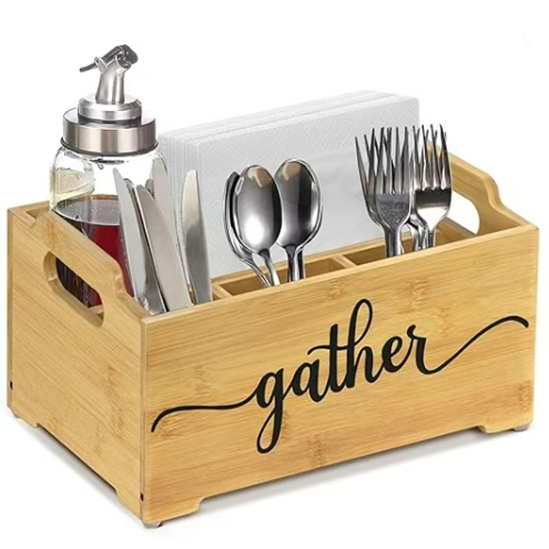 간단한 나무 가정용 주방 식기 저장 상자 휴대용 야외 캠핑 휴대용 디너 플레이트 나이프와 포크 저장 상자