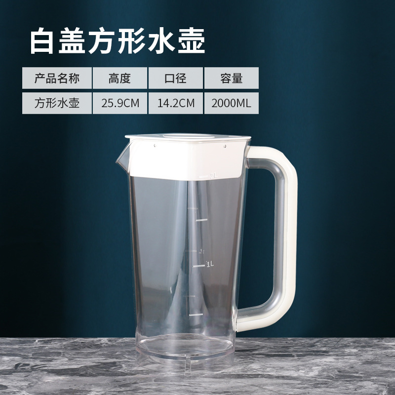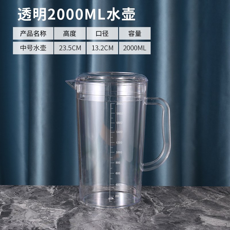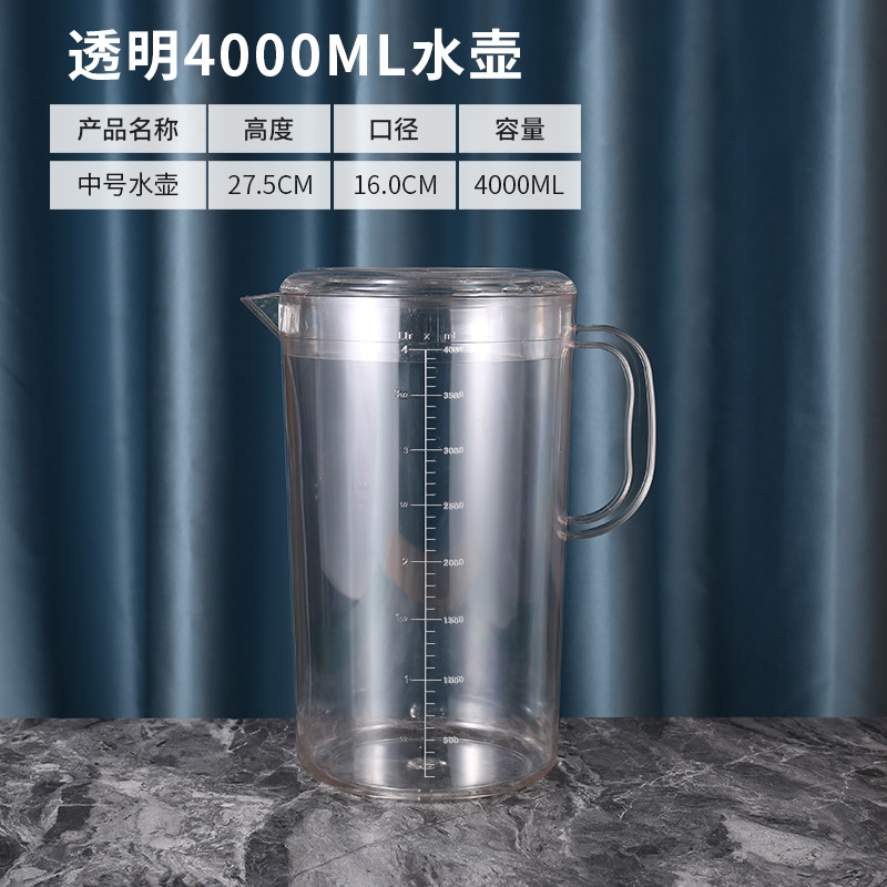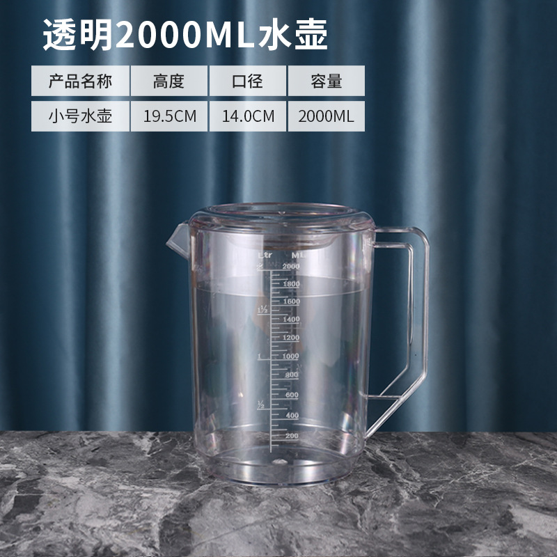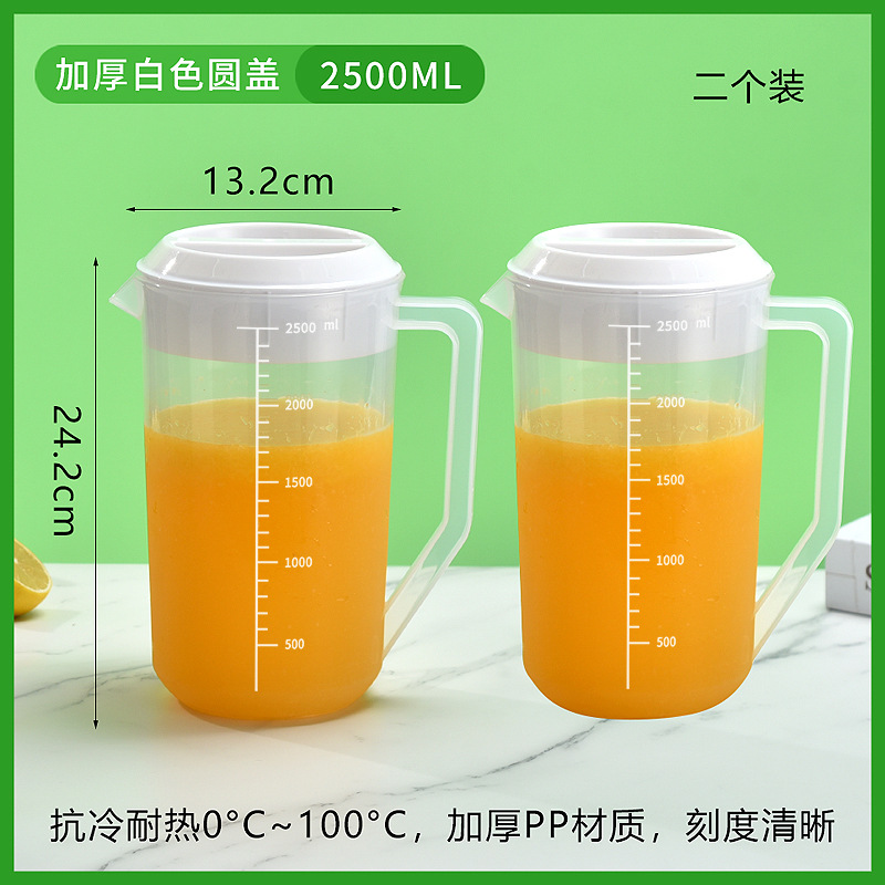 플라스틱 차가운 물 주전자 큰 용량 가구 높은 온도 측정 컵 뚜껑 스케일 주스 냄비 투명 테이프 냄비