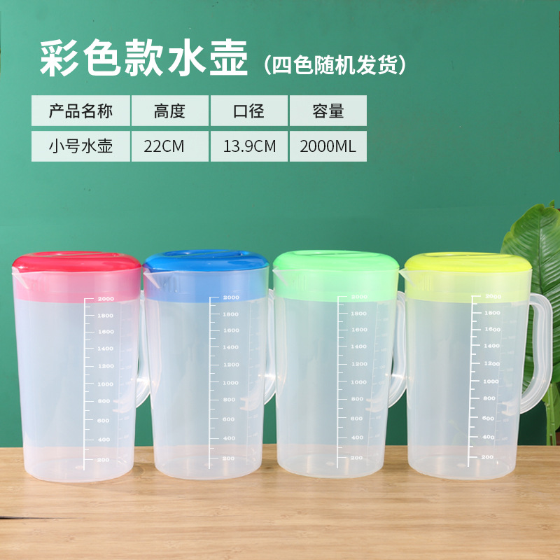 플라스틱 차가운 물 주전자 큰 용량 가구 높은 온도 측정 컵 뚜껑 스케일 주스 냄비 투명 테이프 냄비스토어 가기