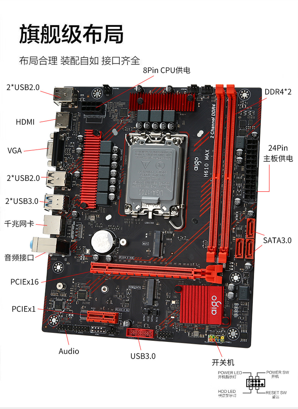 패트리어트 H610MAX 레드 새로운 마더 보드 1700 핀 DDR4 메모리 지원 12/13 세대 CPU