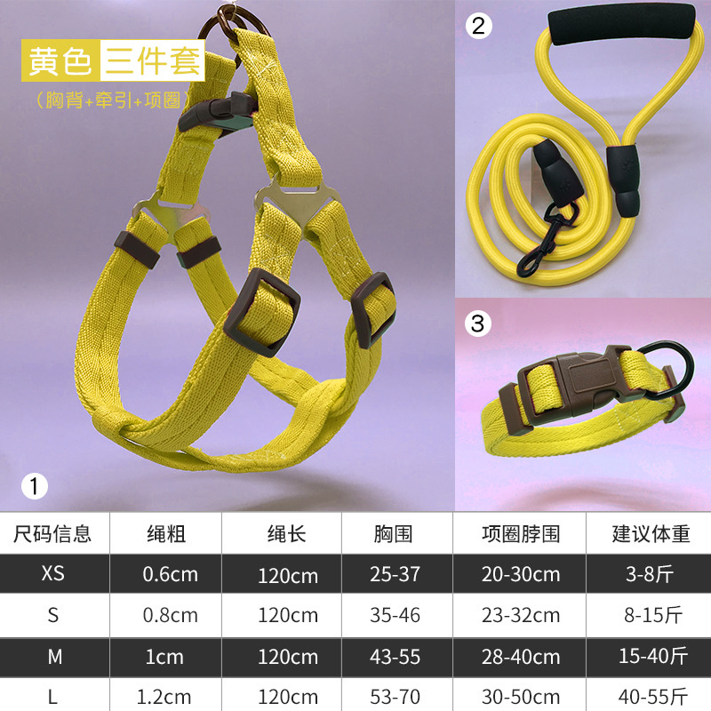 • 3종세트 - 노란색 목걸이 + 가슴 + 밧줄