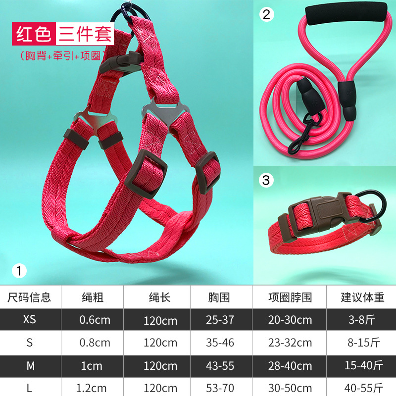 • 3종세트 - 레드칼라 + 하네스 + 로프