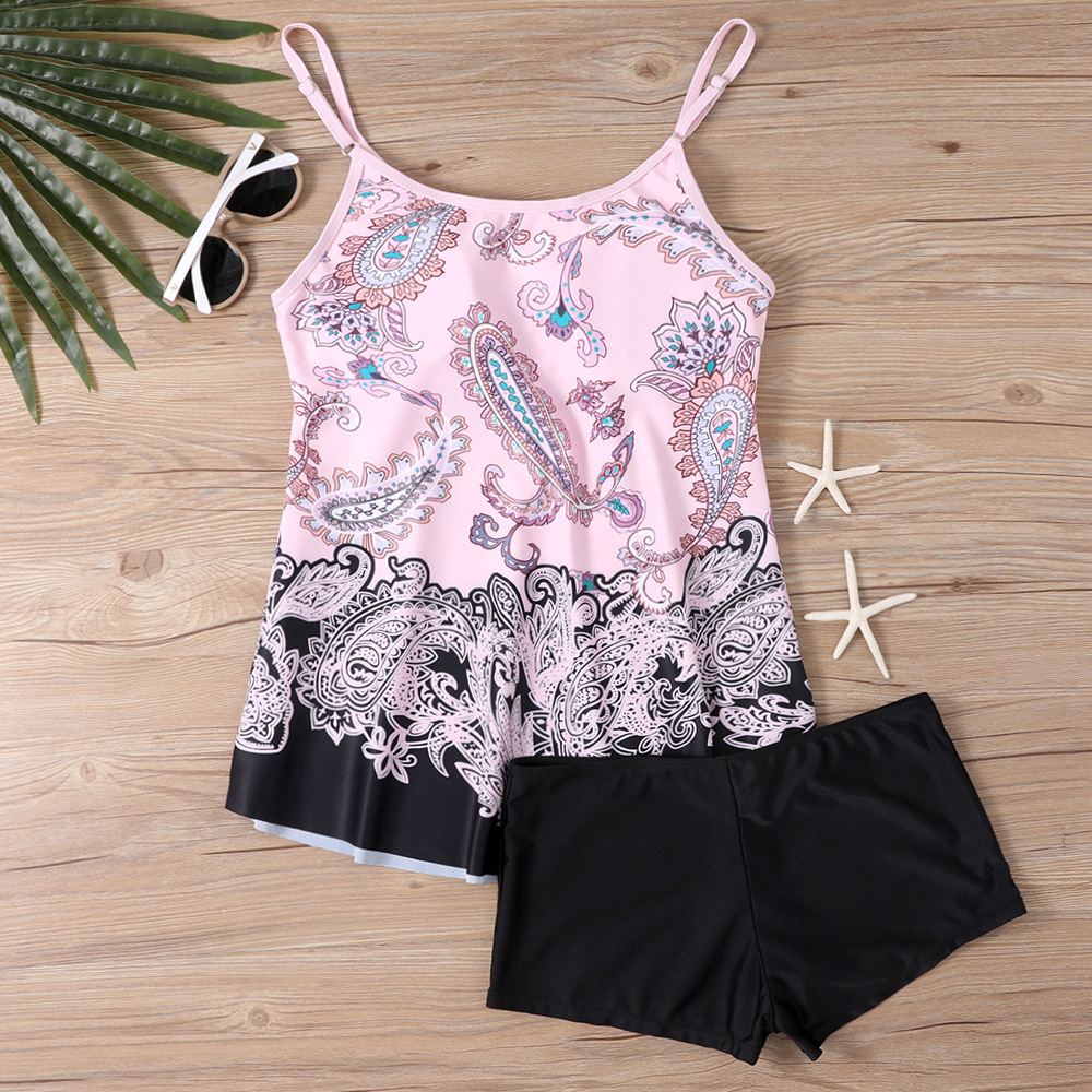 2025 새로운 유럽과 미국의 국경 분할 수영복 여성 플러스 사이즈 인쇄 된 다색 인쇄 슬링 복서 반바지 수영복스토어 가기