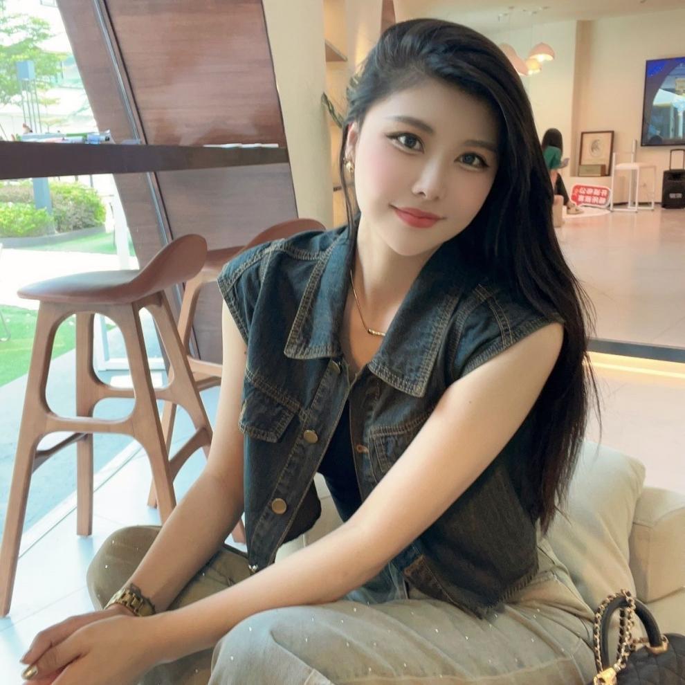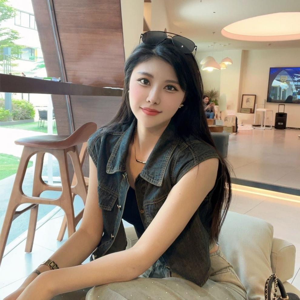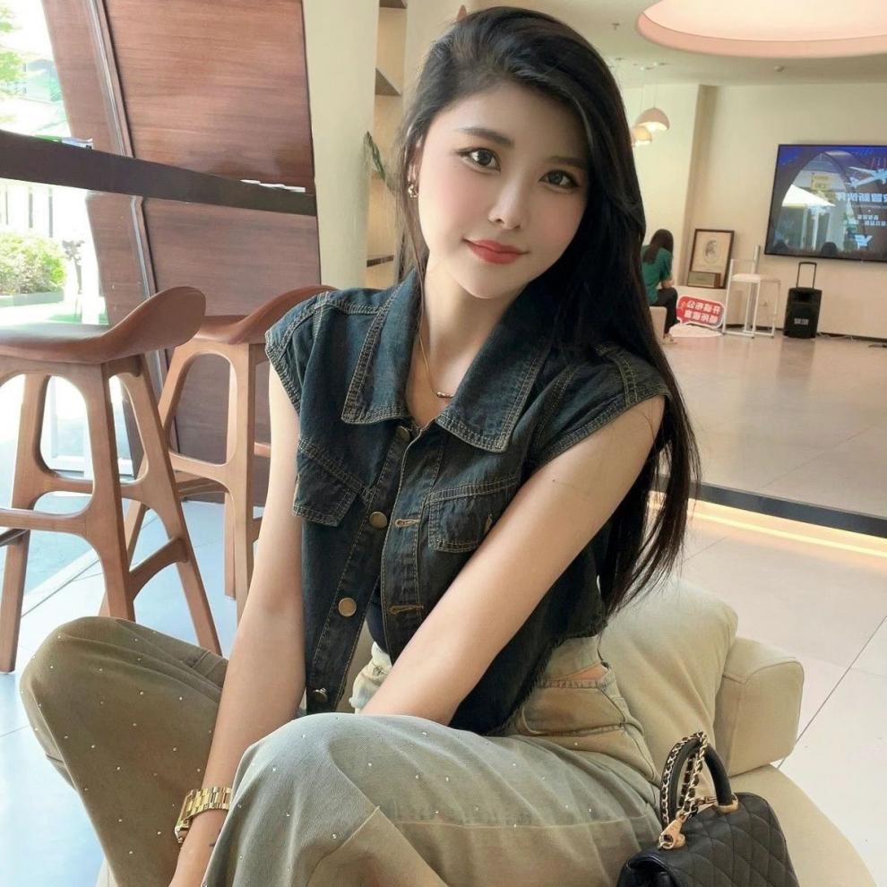 아메리칸 스타일 레트로 우아한 올 매치 민소매 데님 조끼 여자 2024 년 여름 새로운 느슨한 짧은 소매 재킷