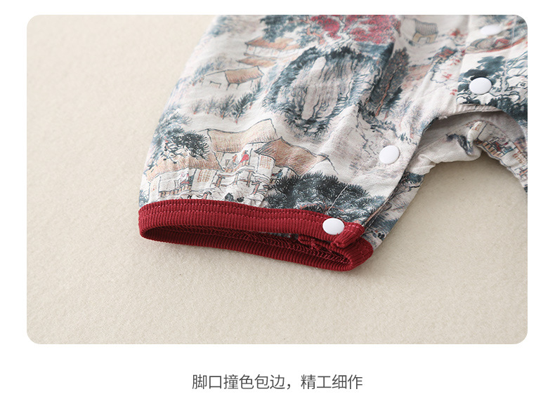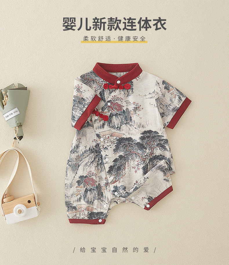여름 얇은 아기 점프 수트 클래스 A 중국 스타일 신생아 의류 복고풍 반팔 등반 세트 소년과 아기스토어 가기