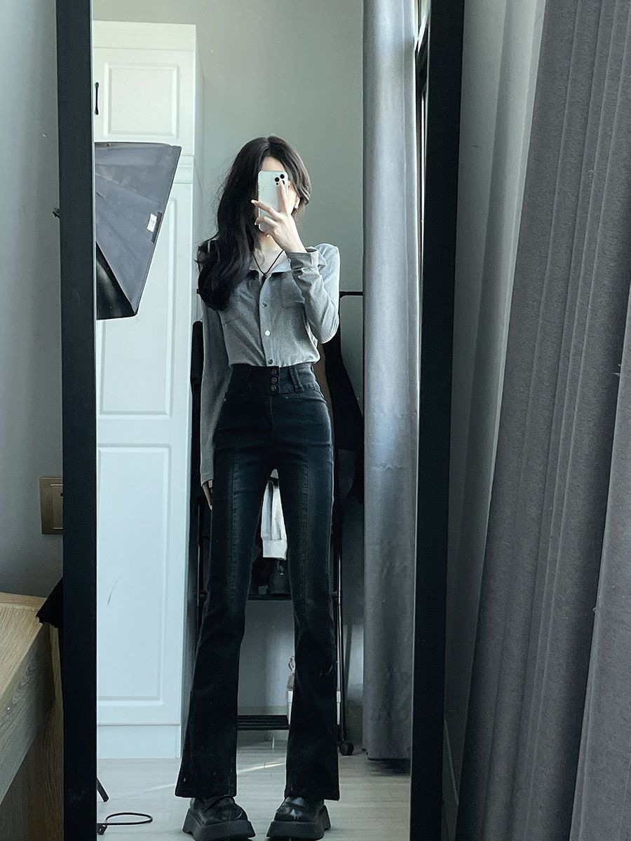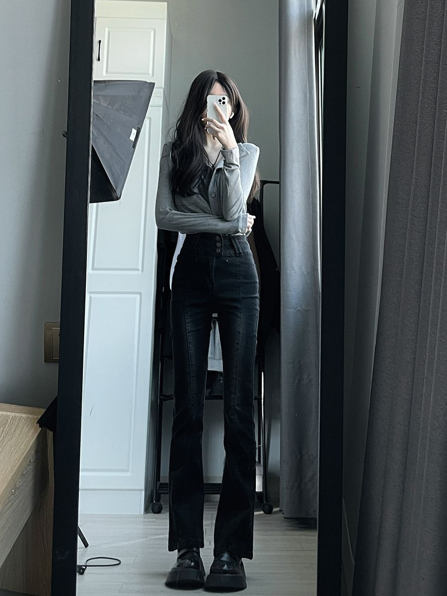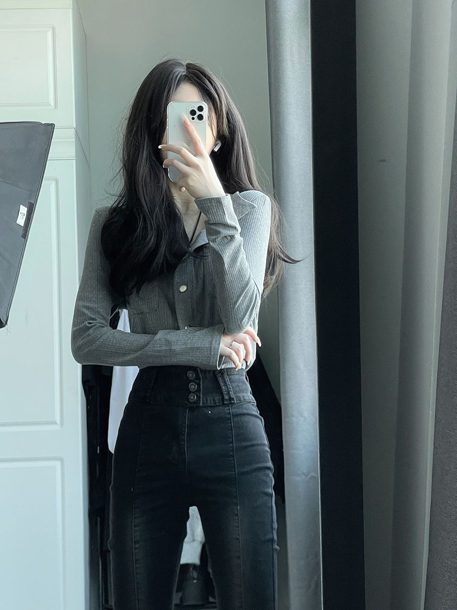 가을 그레이 빈티지 순수한 욕망 스타일 폴로 칼라 긴 소매 탑 여성용 슬림 슬리밍 니트 카디건 디자인 센스 틈새스토어 가기