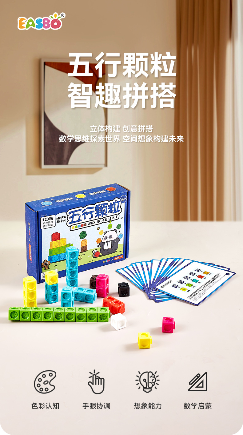 EASBO Five Elements Granules 어린이 집중력 장난감 수학 논리적 공간적 사고 조립 교육용 빌딩 블록 접합